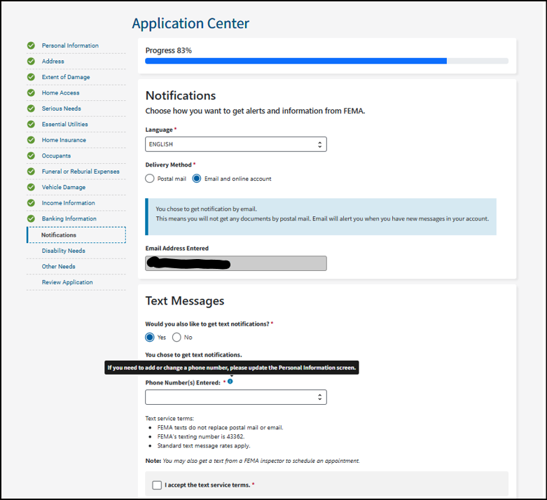 It's important you understand that your application becomes a legal document. FEMA may use external sources to verify the accuracy of the information you provided.