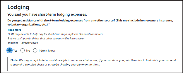 FEMA may ask for a copy of your lodging receipts.