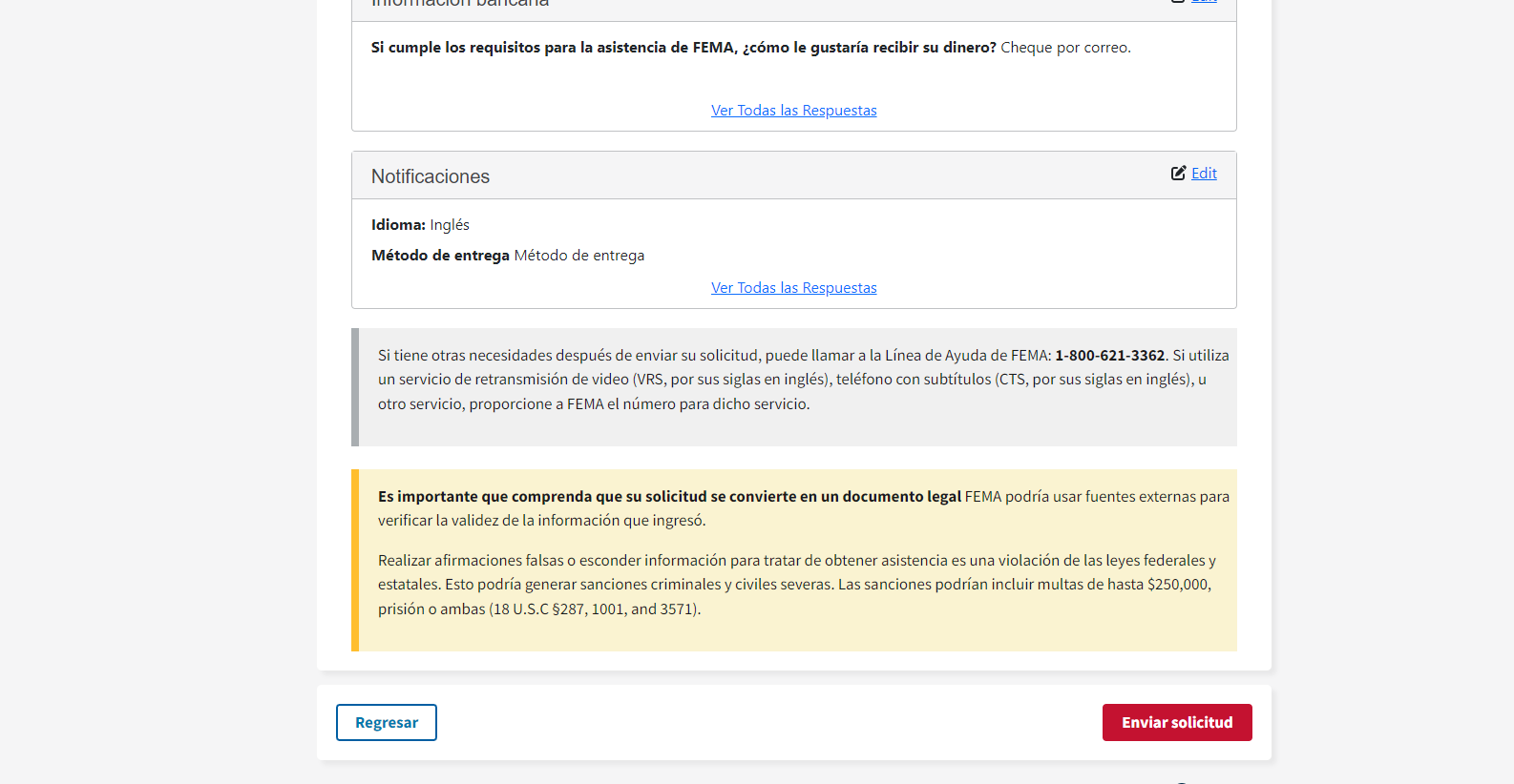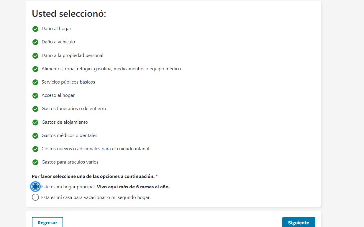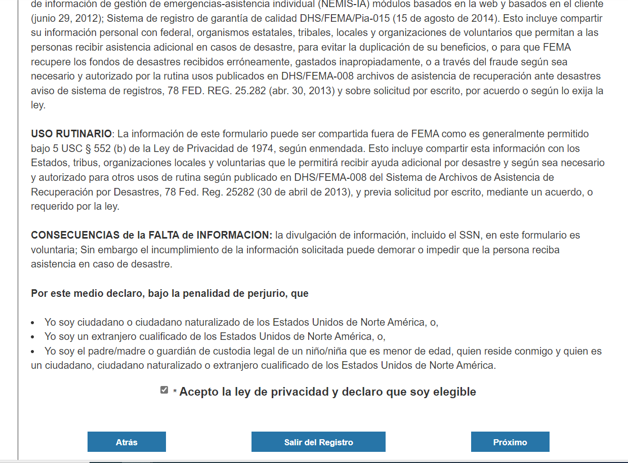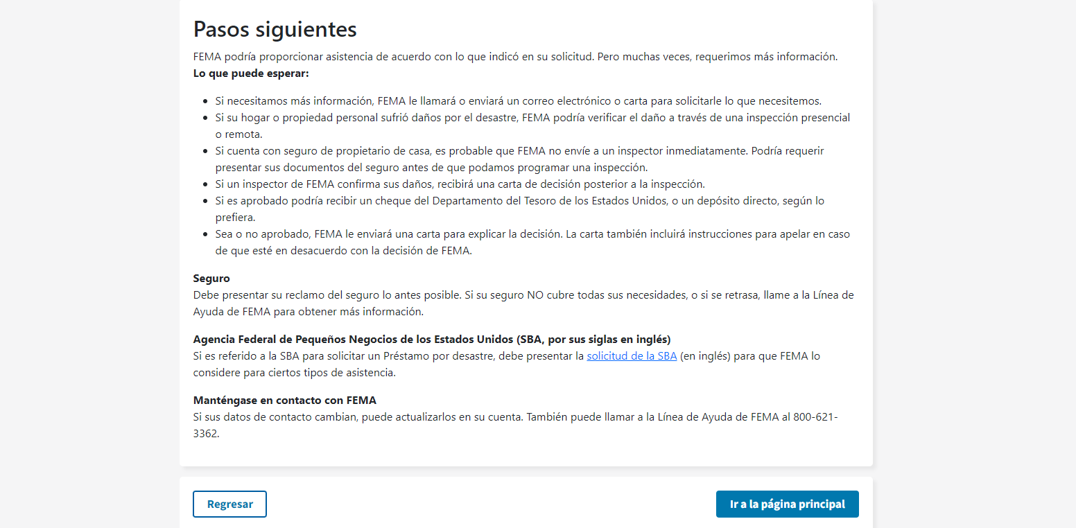 Disaster Application Process/Spanish Document