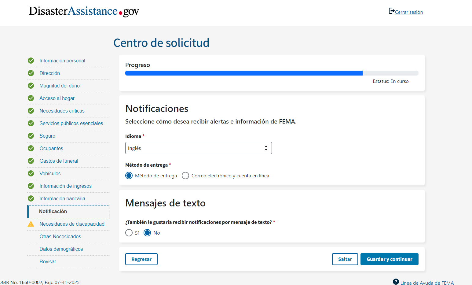 FEMA Form FF-104-F Tele-Registration, Registro Para Asistencia De Desastre