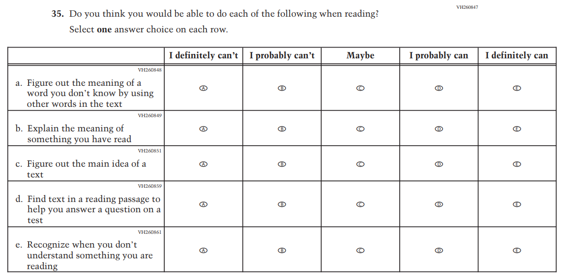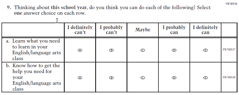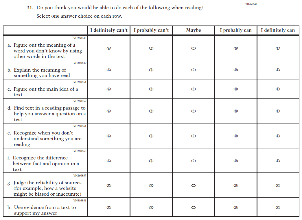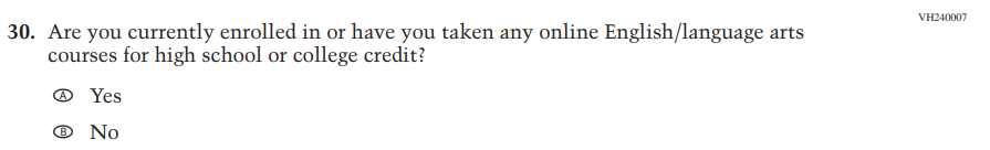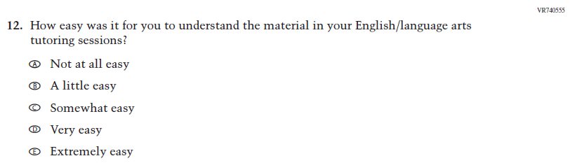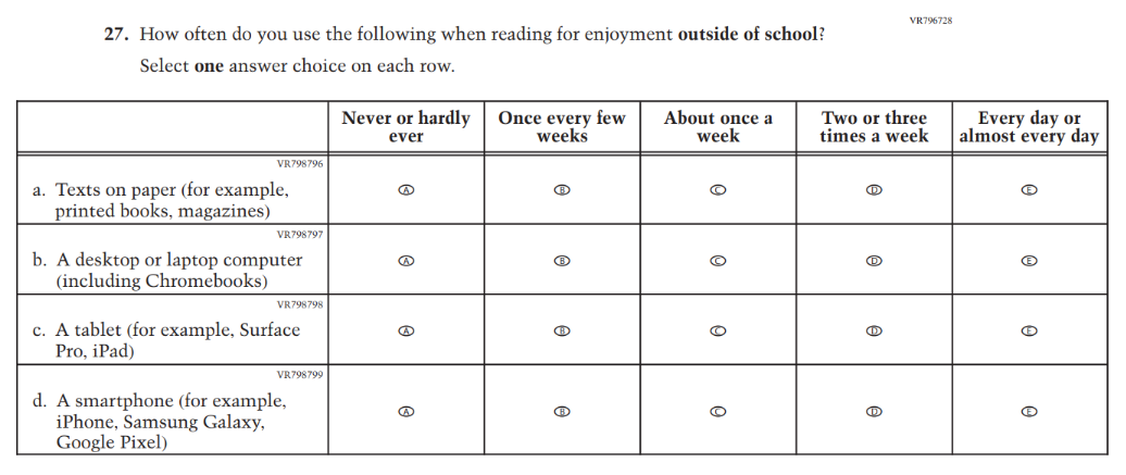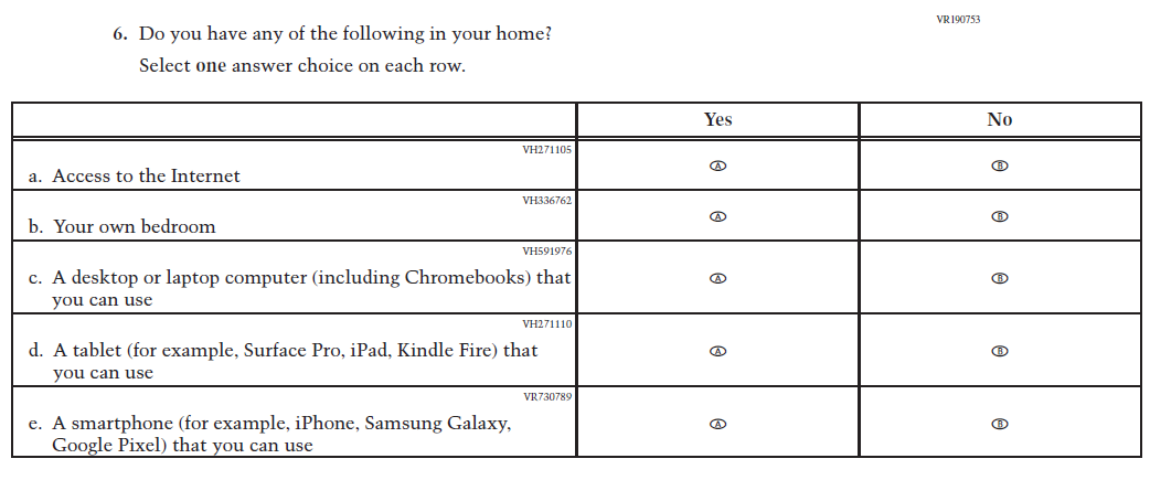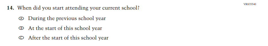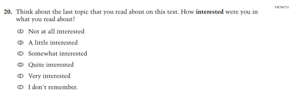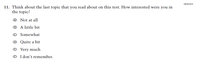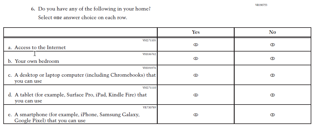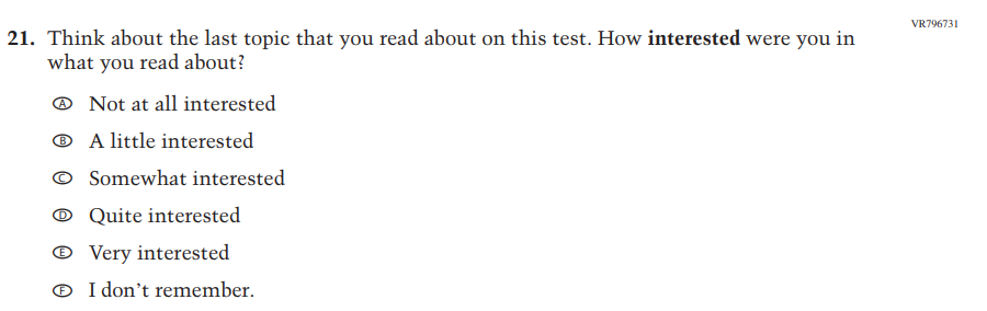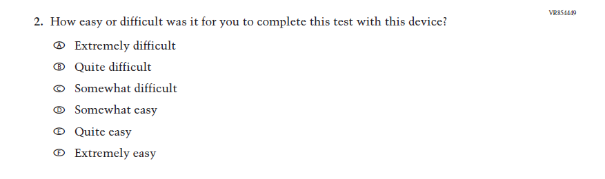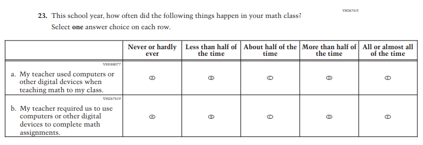 This Item was added to understand students’ experiences with using their devices to take the assessment. |