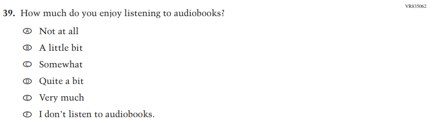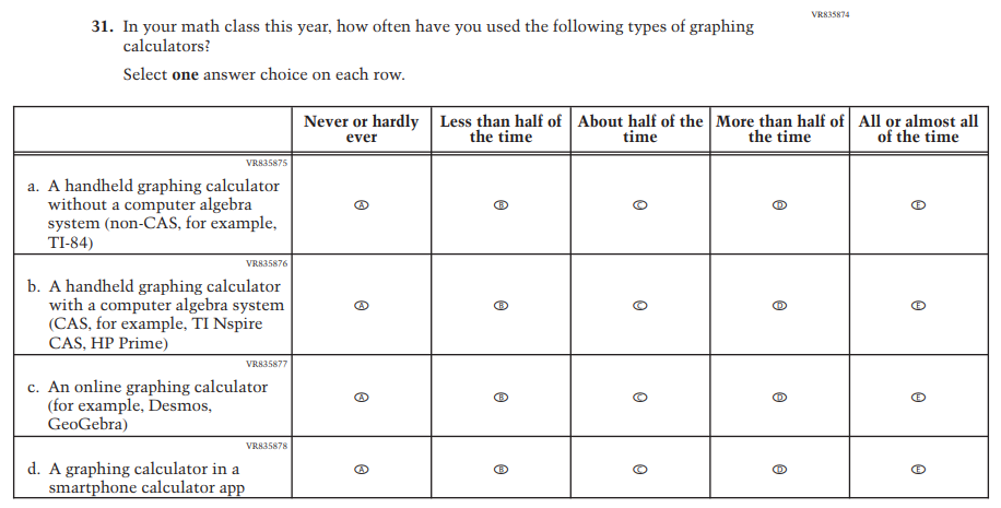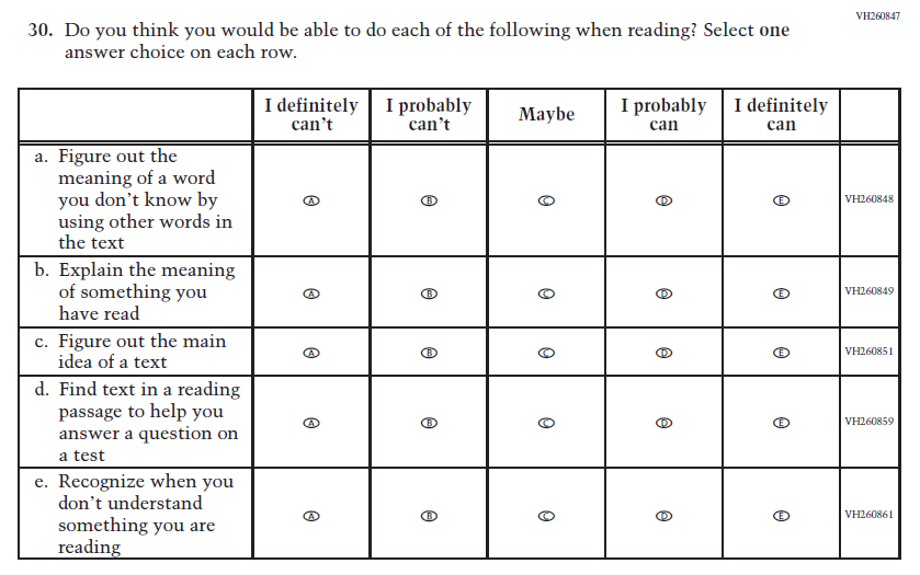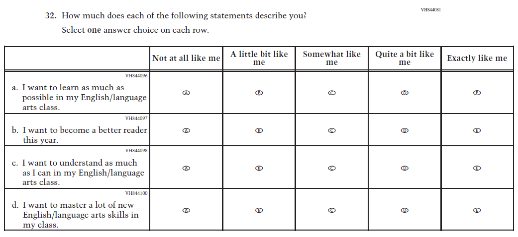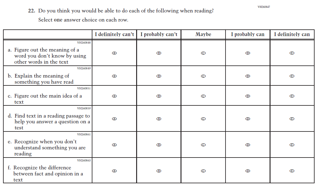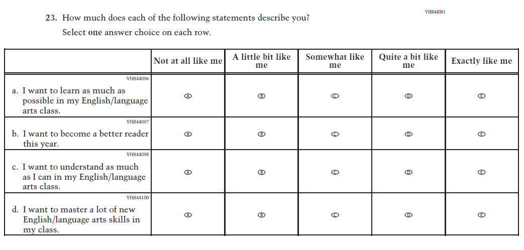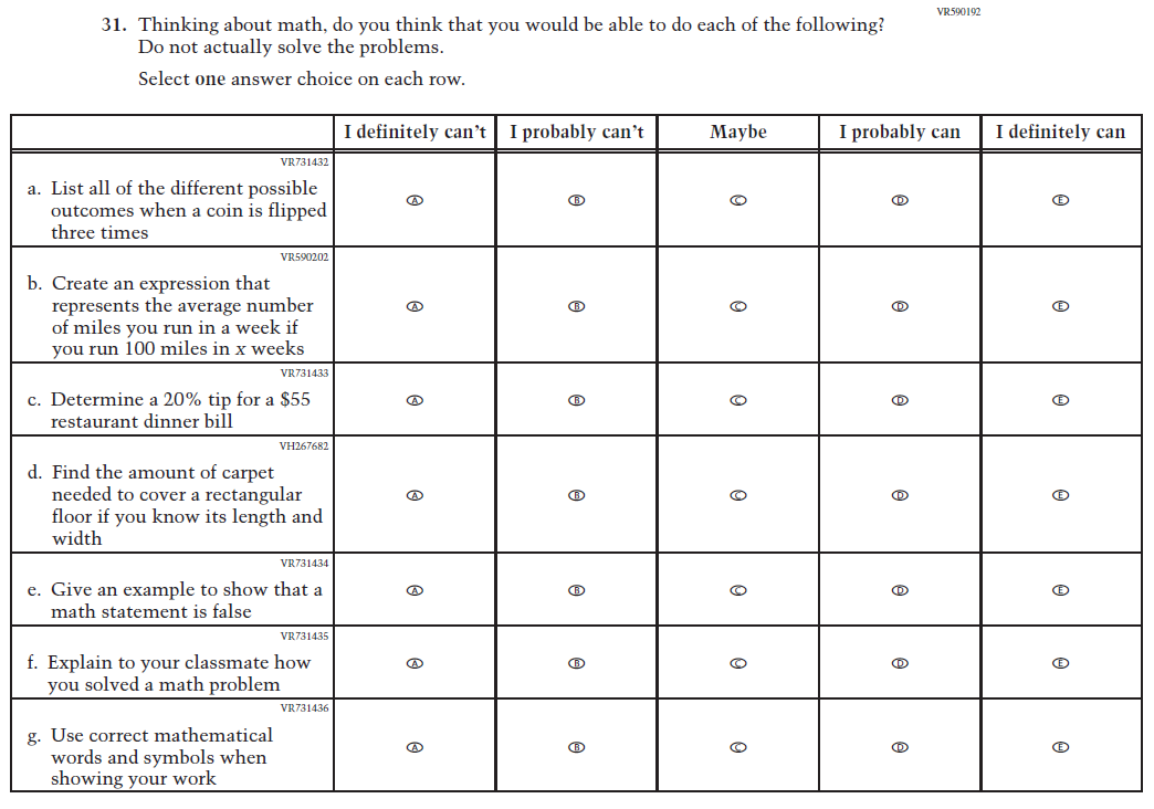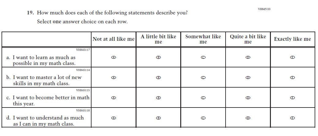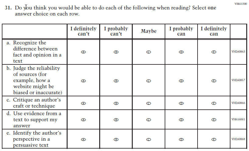 This Item was added to understand students’ experiences with using their devices to take the assessment. |