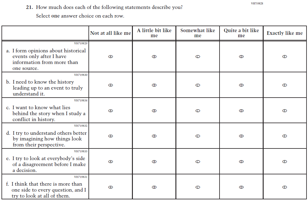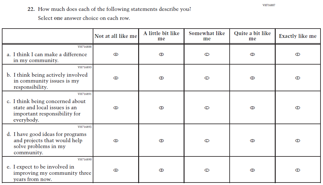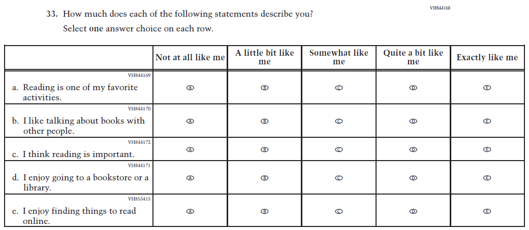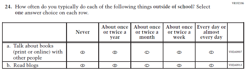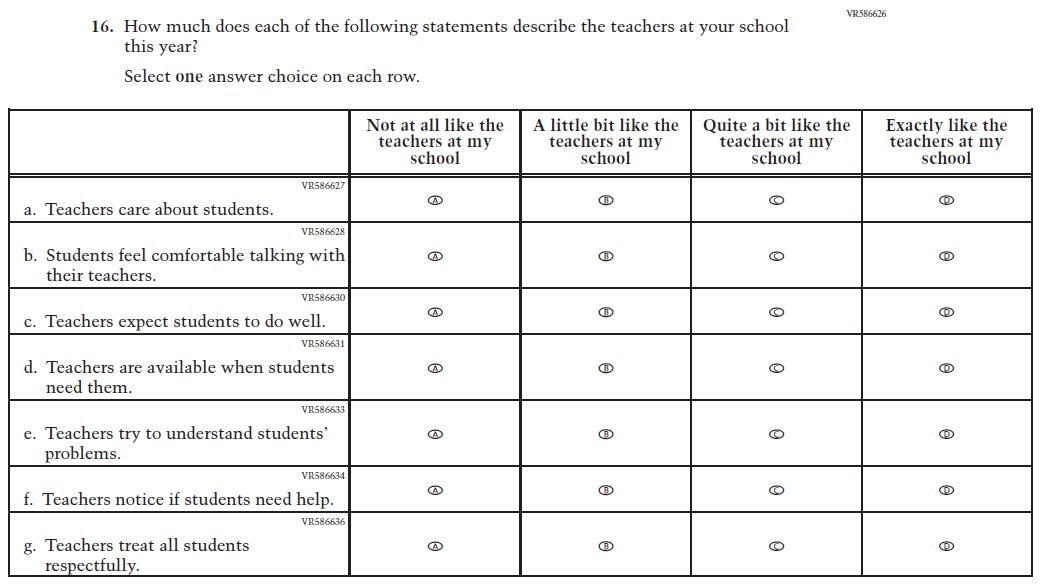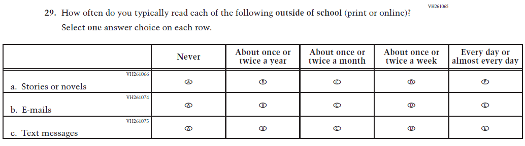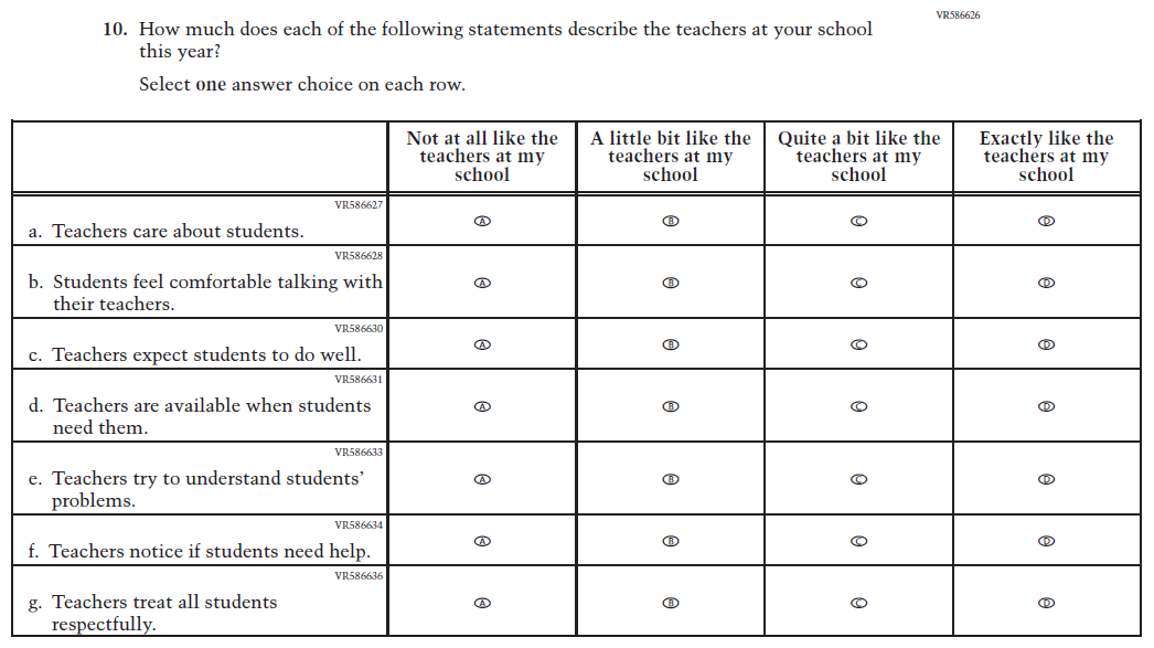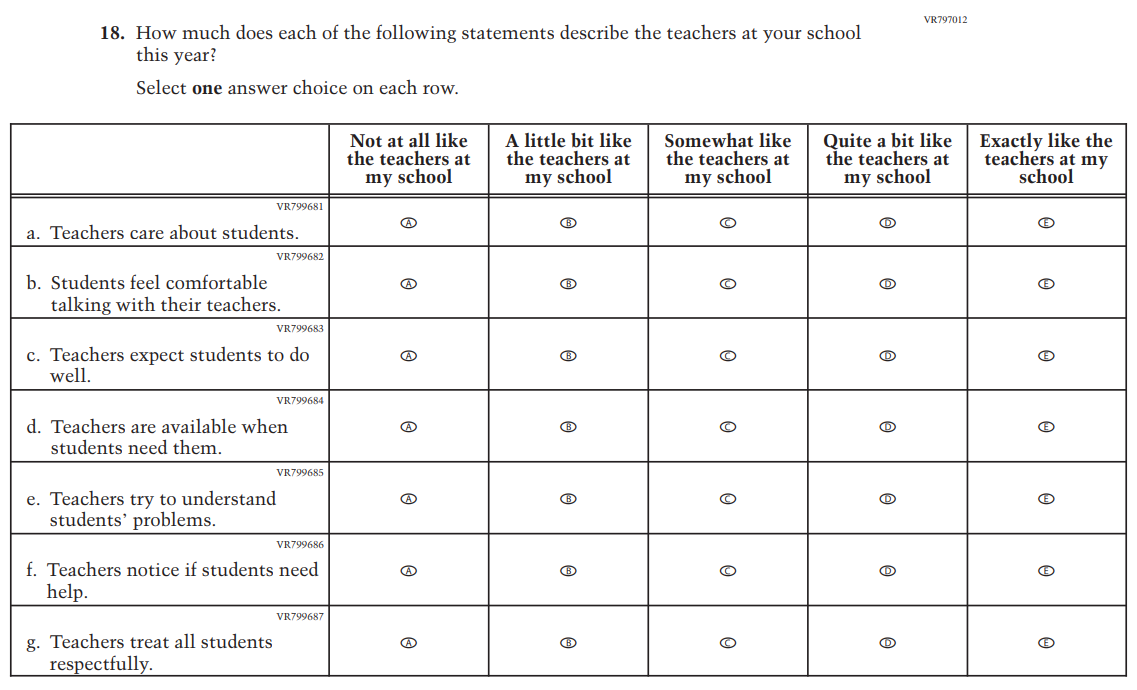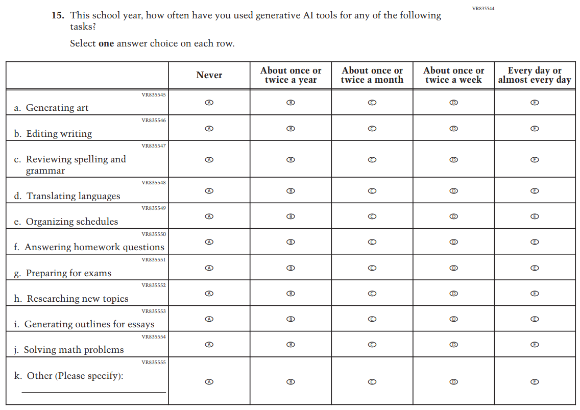 This Item was added to understand students’ experiences with using their devices to take the assessment. |