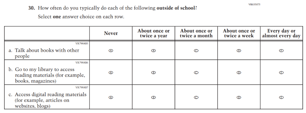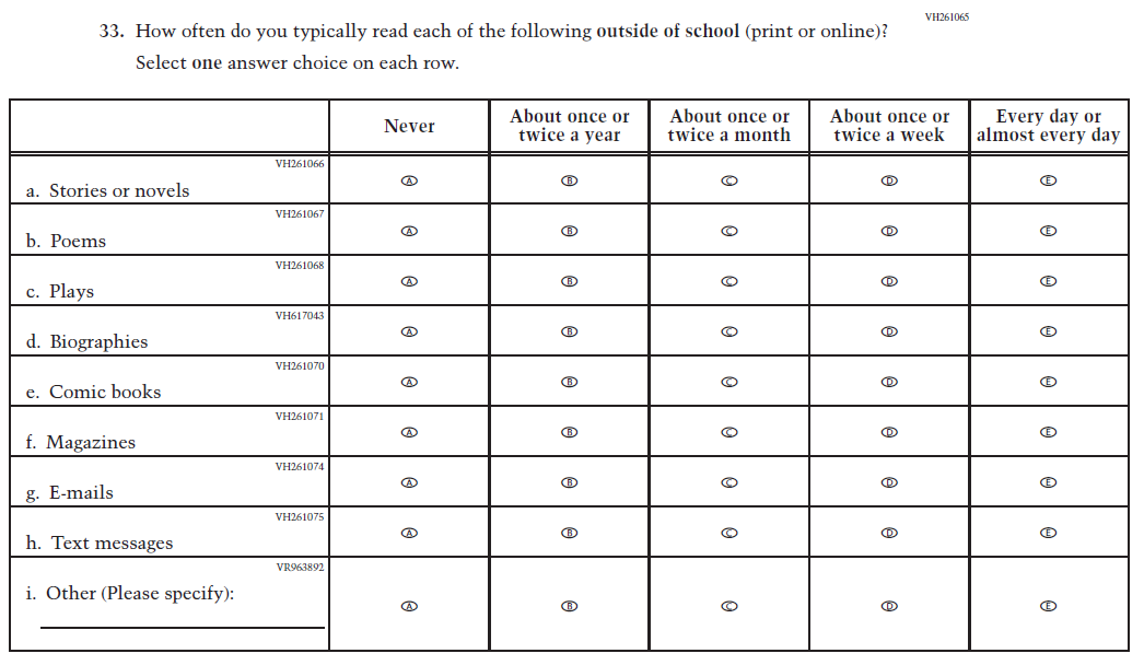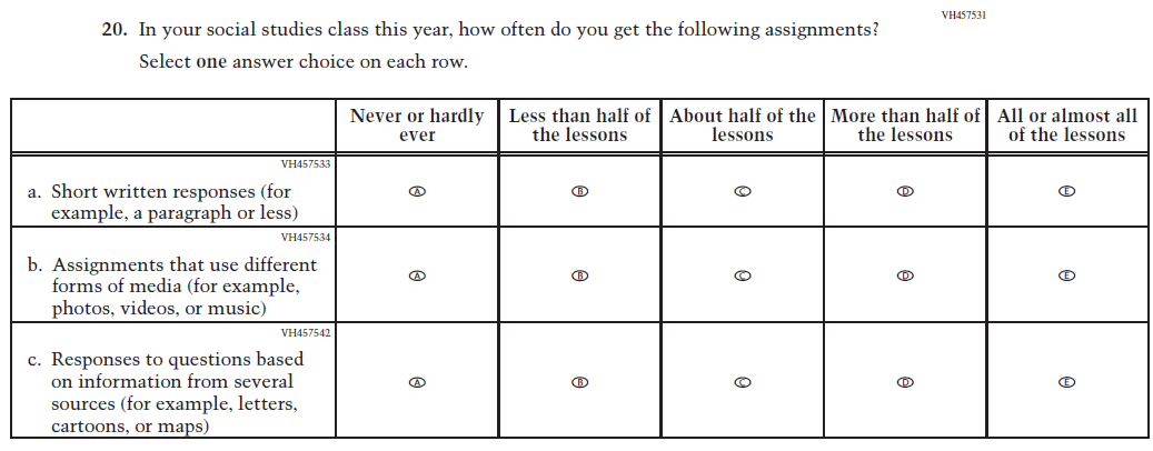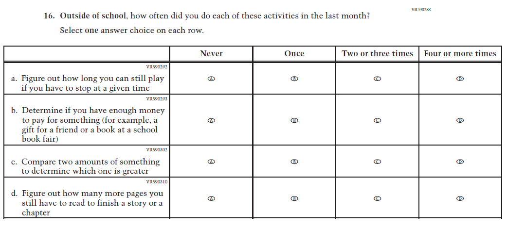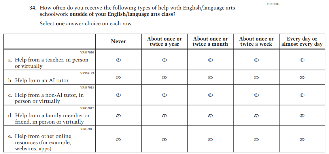Learning Recovery Items were dropped from the 2026 NAEP Assessment. |