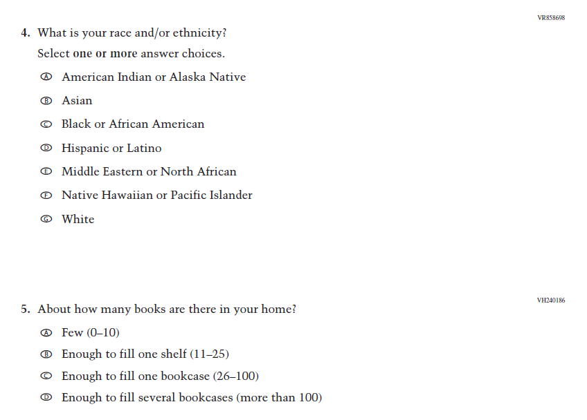 Important changes in how we collect demographic information are reflected in the 2026 instruments that are ready for publication and review. In March 2024, the Office of Management and Budget (OMB) announced revisions to Statistical Policy Directive No. 15: Standards for Maintaining, Collecting, and Presenting Federal Data on Race and Ethnicity (SPD 15) and published the revised SPD15 standard in the Federal Register (89 FR 22182). See Part A.7 of this package to see how NCES plans to incorporate these revisions into NAEP 2026.