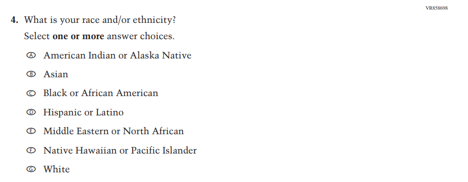 This Item was dropped and replaced with an updated Item (VR858698) that adheres to OMB updated Statistical Policy Directive No. 15. |
