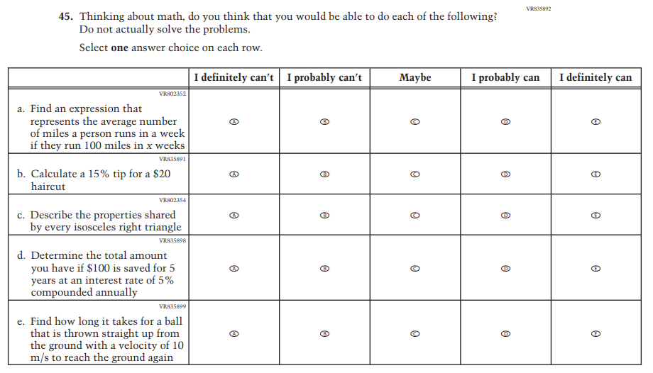 This item was developed to measure content aligned with the new Mathematics framework. |