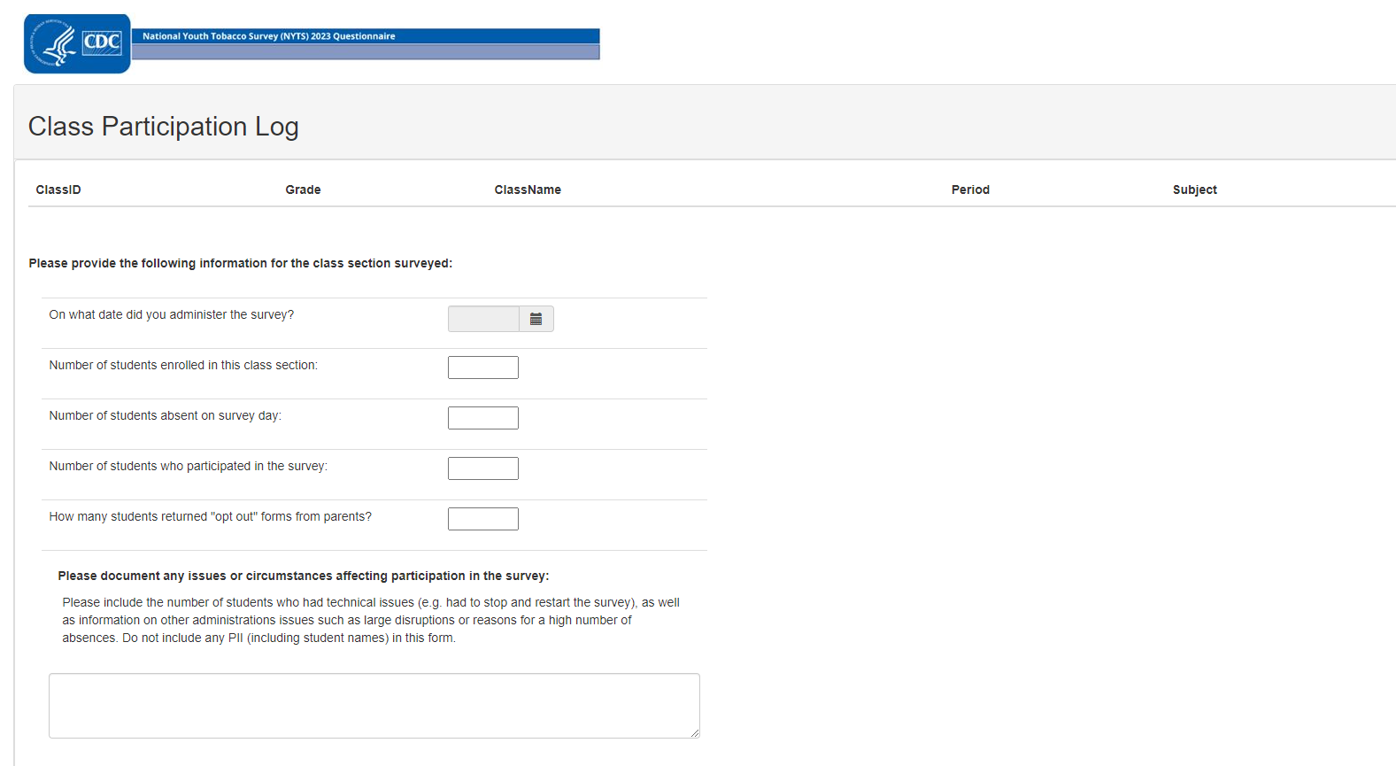 I4. Class Participation Form