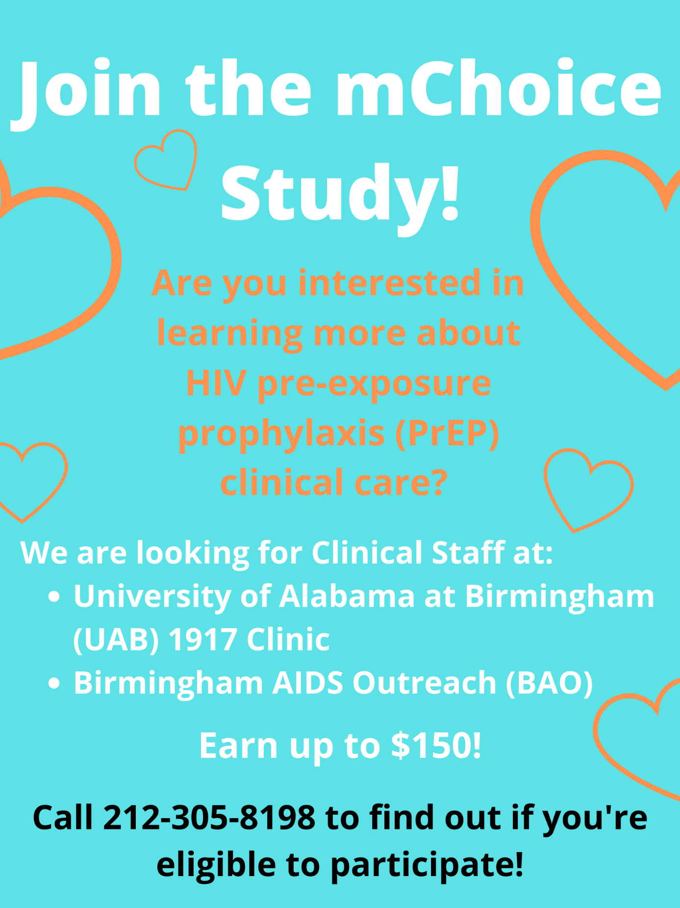 I hope this email finds you well. We are conducting a research study called mChoice: Improving PrEP Uptake and Adherence among Minority MSM through Tailored Provider Training and Adherence Assistance in Two High Priority Settings study at [Study Site] to better understand provider experience with PrEP care, clinic processes, and clinic cultures. I am reaching out to see if you would be interested in participating in this paid research study. Participating clinicians will receive $150. Please respond to this email if you are interested or for more information. Thank you and have a great day!