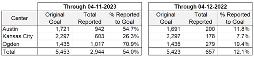In FY 2023 to date, DH events are contributing over 90% of all CAS SP seasonal employees hired. Currently SP has reached 54% of its overall hiring goal – far superior to last year at this time (12%, see table below).