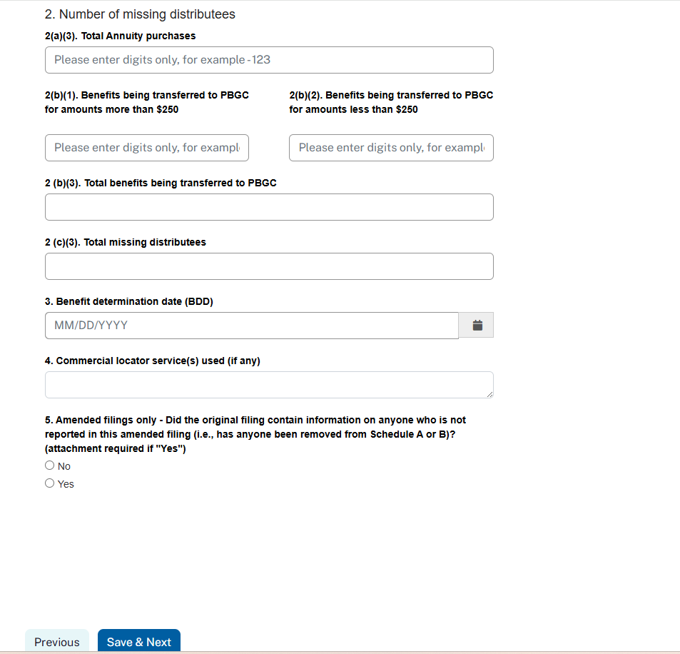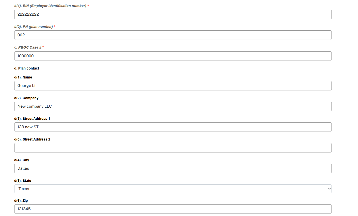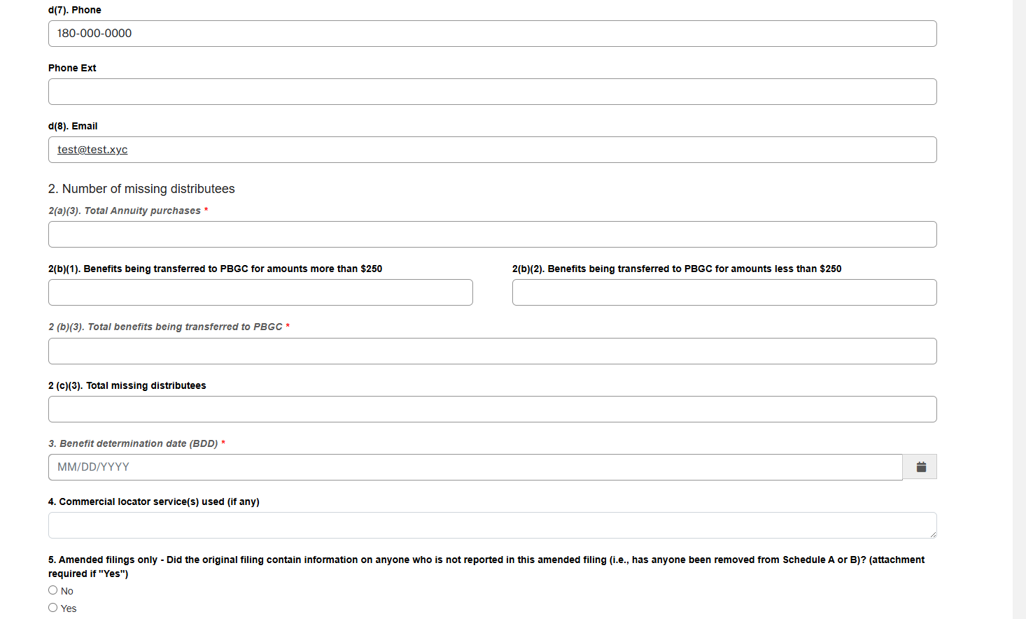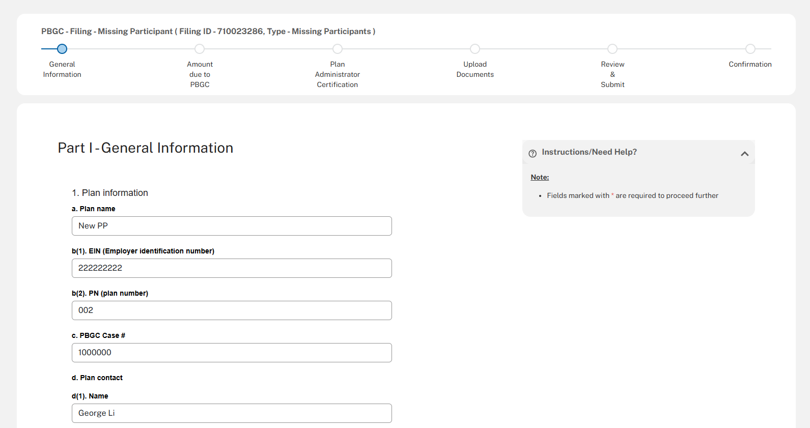 The following screenshots demonstrate what the standard termination filing module in PBGC’s e-Filing Portal will look like.