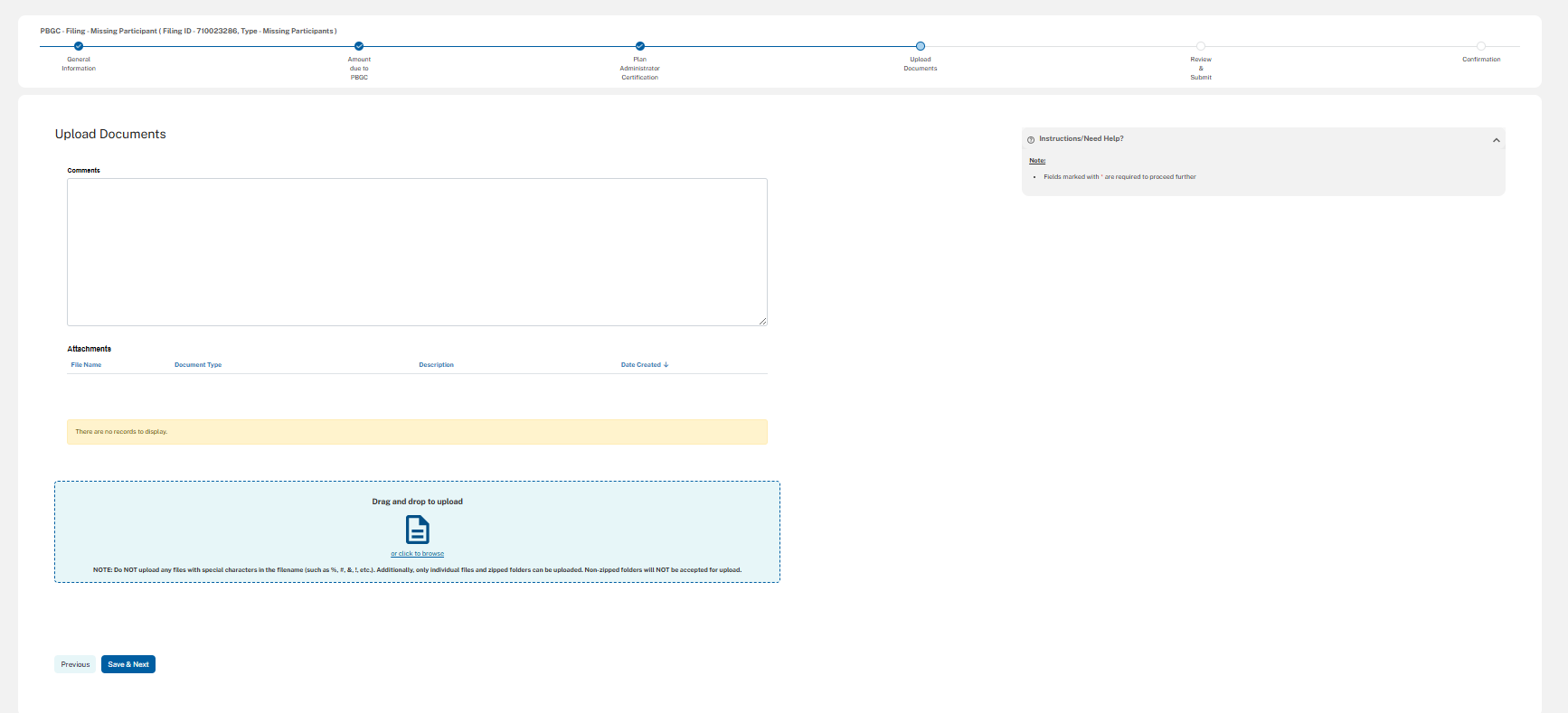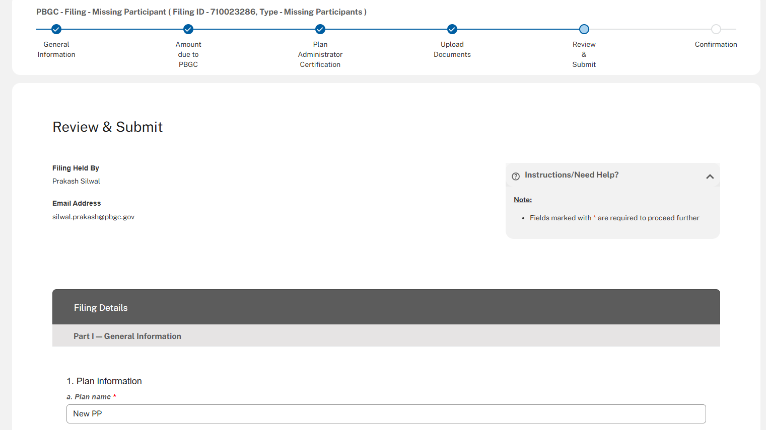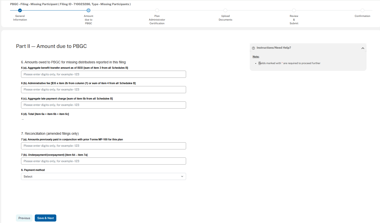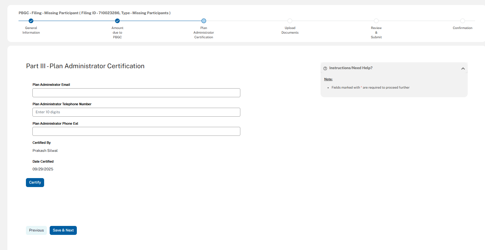 The following screenshots demonstrate what the standard termination filing module in PBGC’s e-Filing Portal will look like.