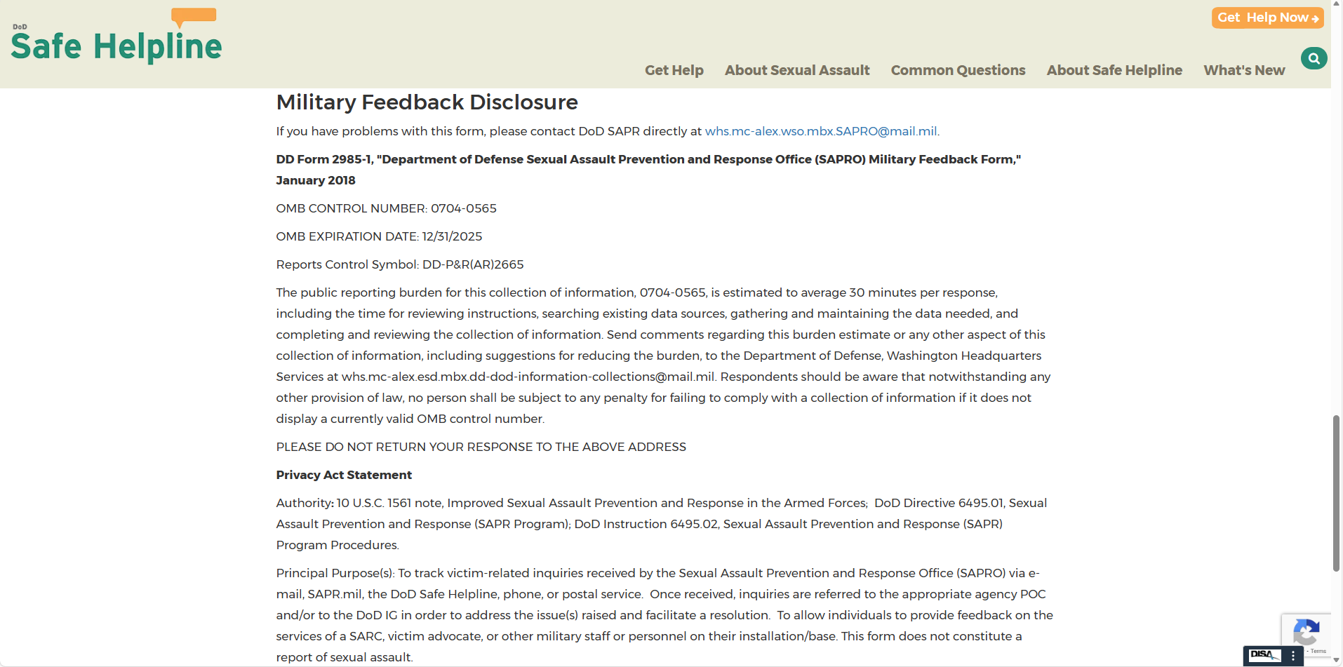 DD Form 2985-1 Department of Defense Sexual Assault Prevention and Resp