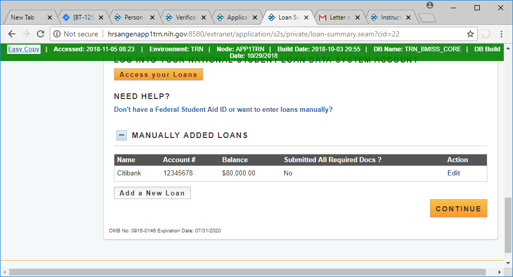 Federal Student Aid Screen when you select “Access your Loans”