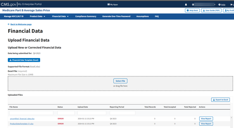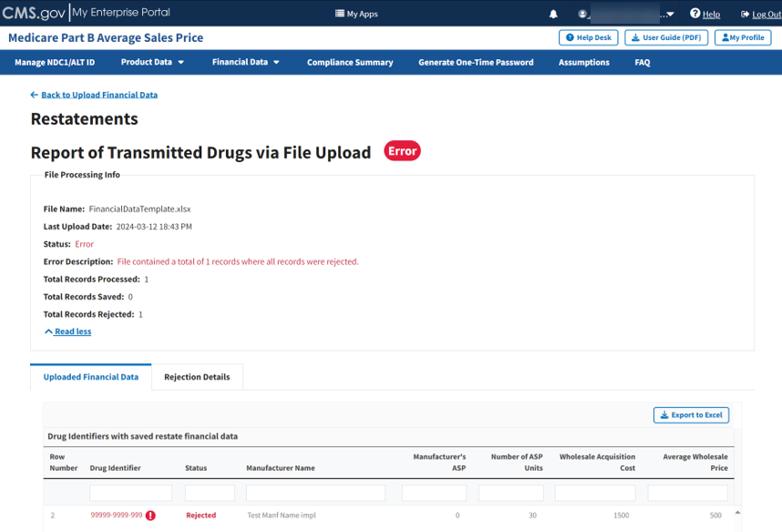 Figure 70: Upload Financial Data - Report of Transmitted Drugs via File Upload 50