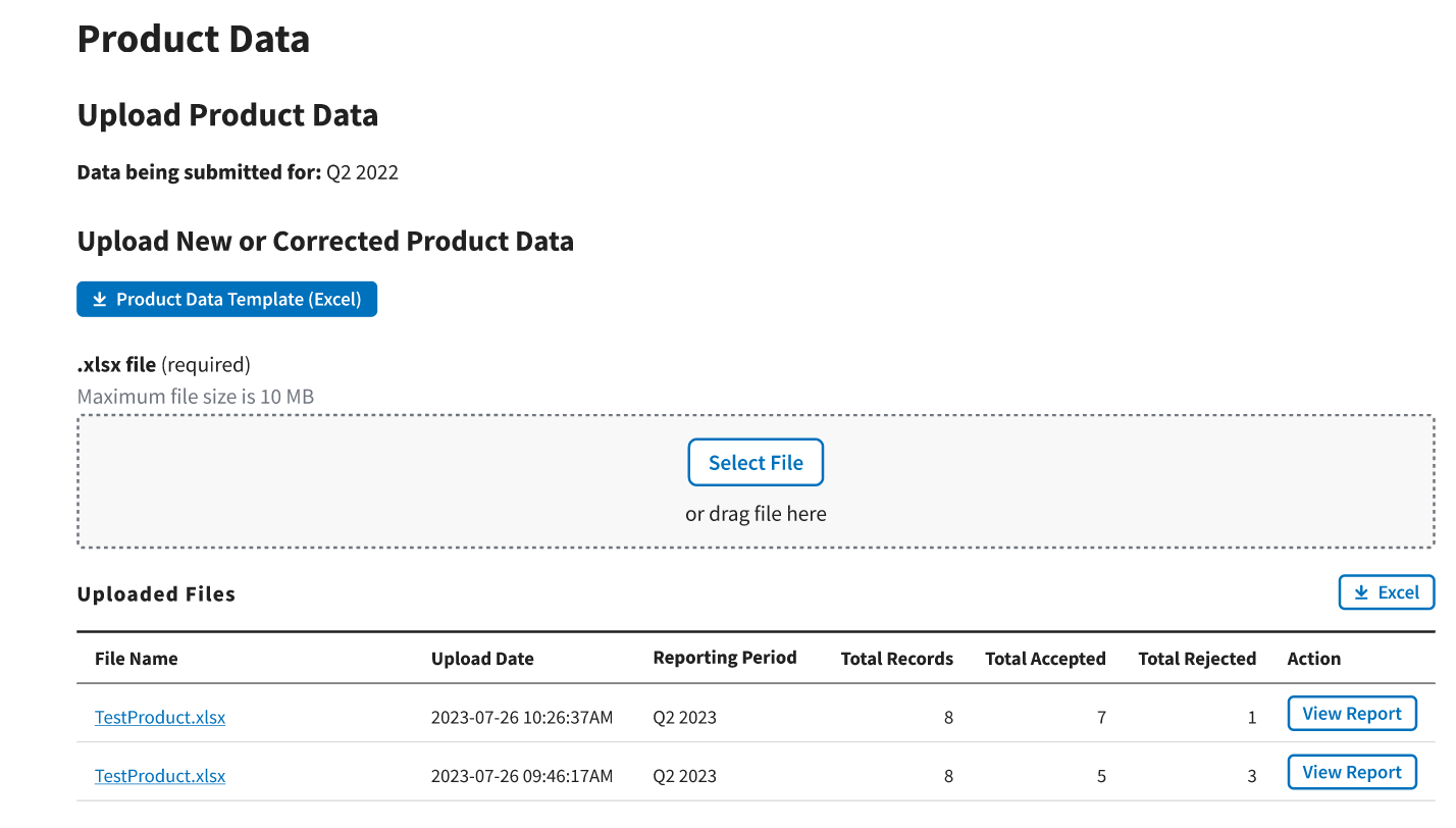 Figure 49: Upload Product Data - Reported Rejection Details 36