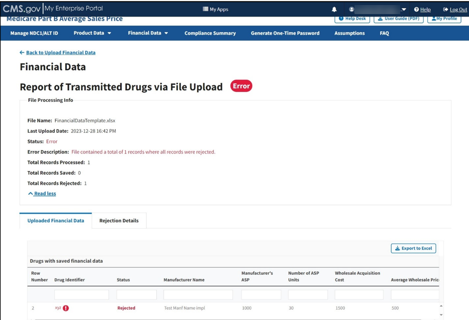 Figure 71: Upload Financial Data - Reported Rejection Details 51