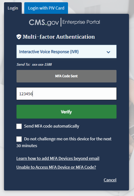 Figure 3: Logging in Using MFA - Multi-Factor Authentication - (IVR) Example