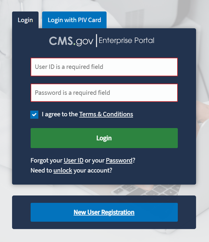 First time users must register and create an account in the CMS Enterprise Portal before logging in to the ASP Module. Refer to the Resource Library on the Education and Outreach page to view the ASP Module Registration User Guide for registration steps.