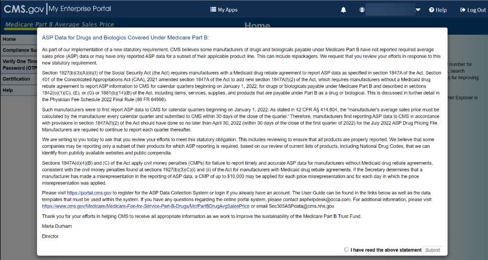 The purpose of this user guide is to provide guidance and instructions to representatives of drug manufacturing companies as they submit federally required Medicare Part B drug Average Sales Price (ASP) data to the Centers for Medicare & Medicaid Services (CMS).