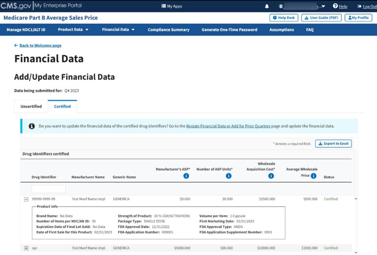 Figure 64: Add/Update Financial Data - Certified Drugs 46
