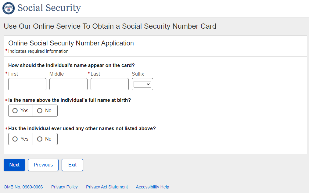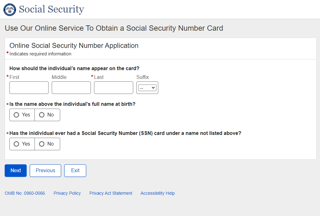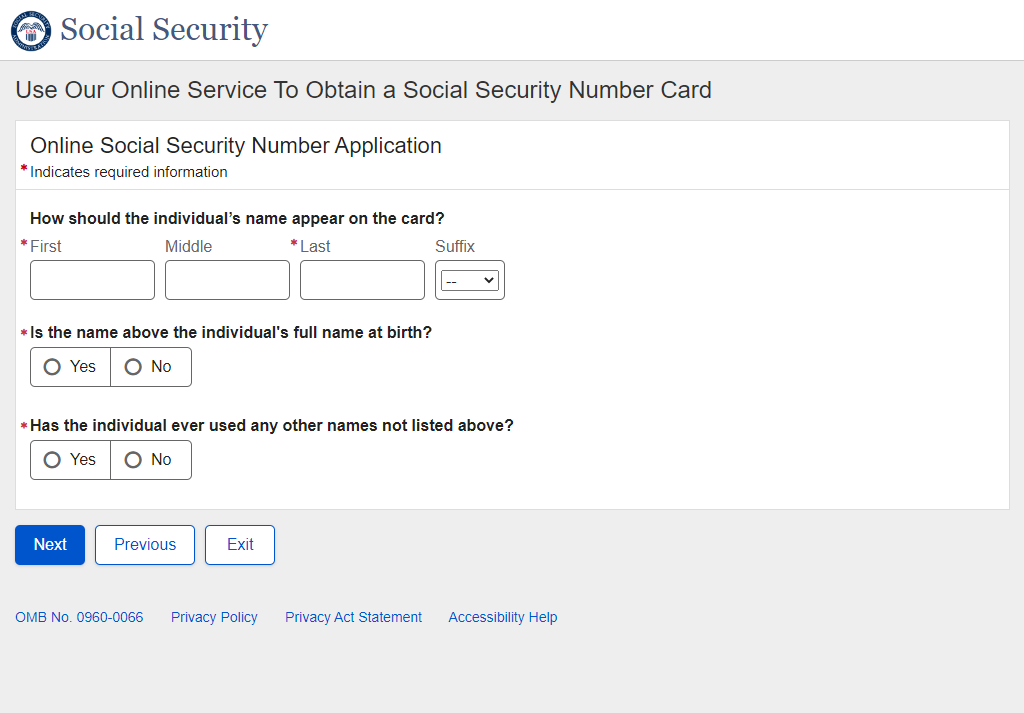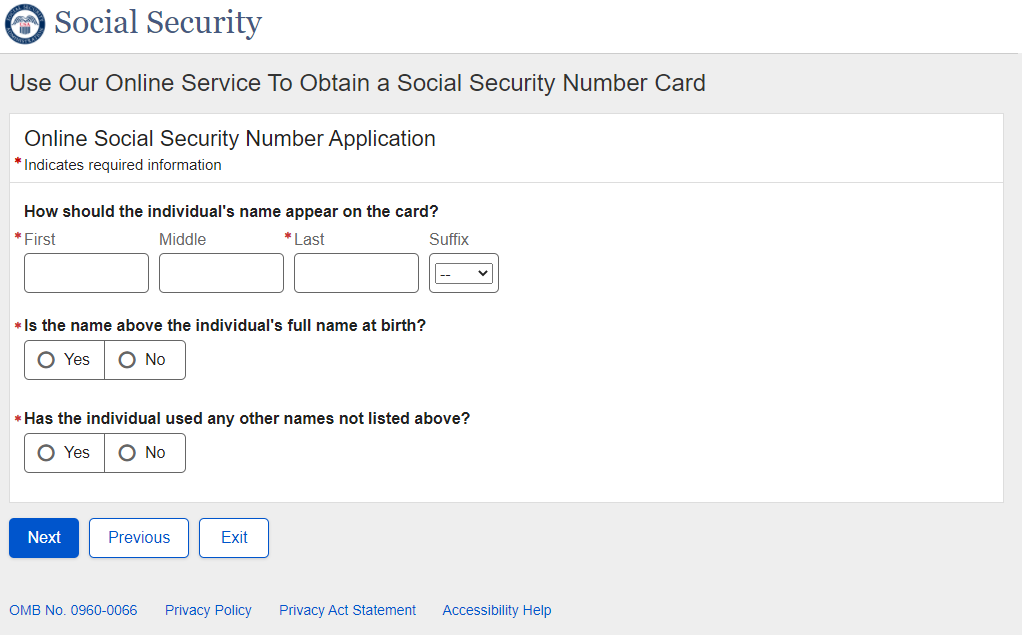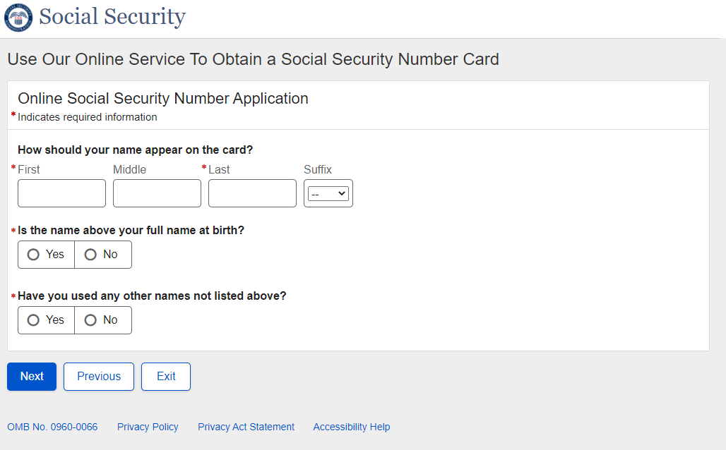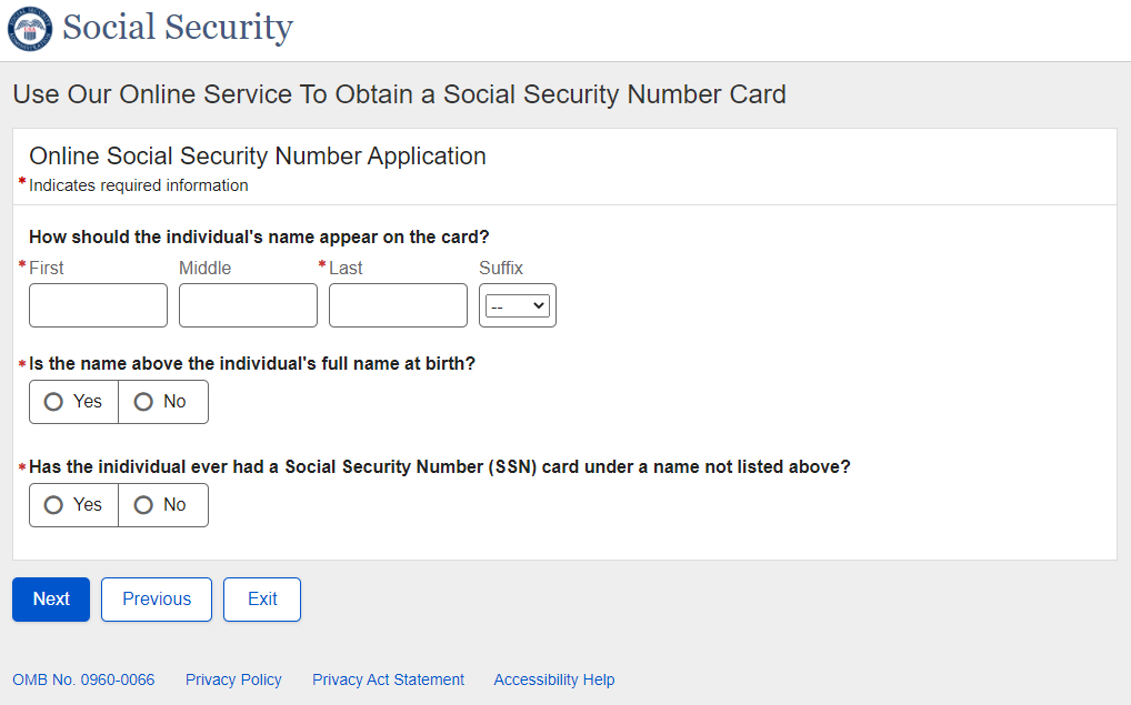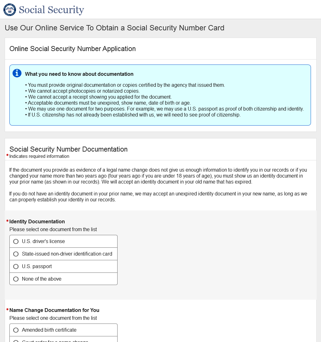 Application for a Social Security Card