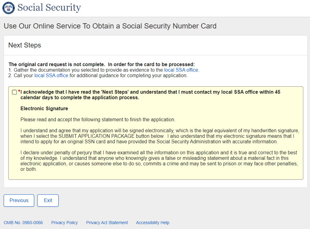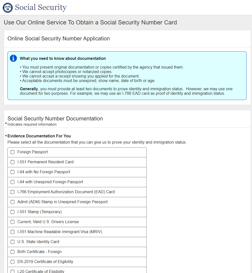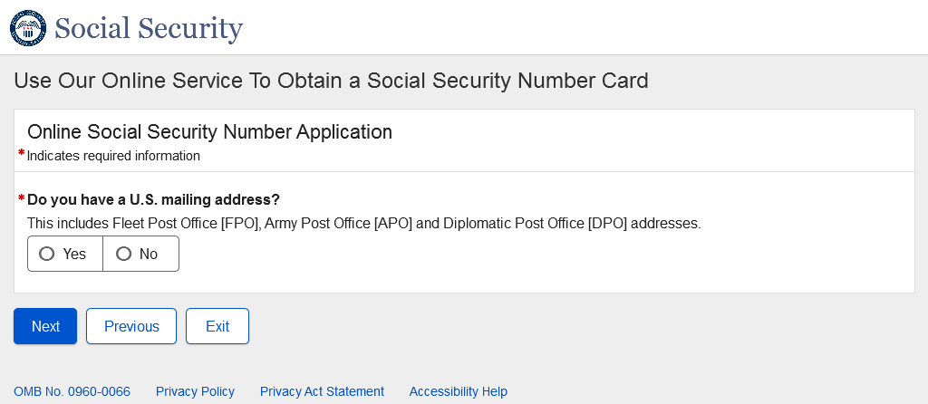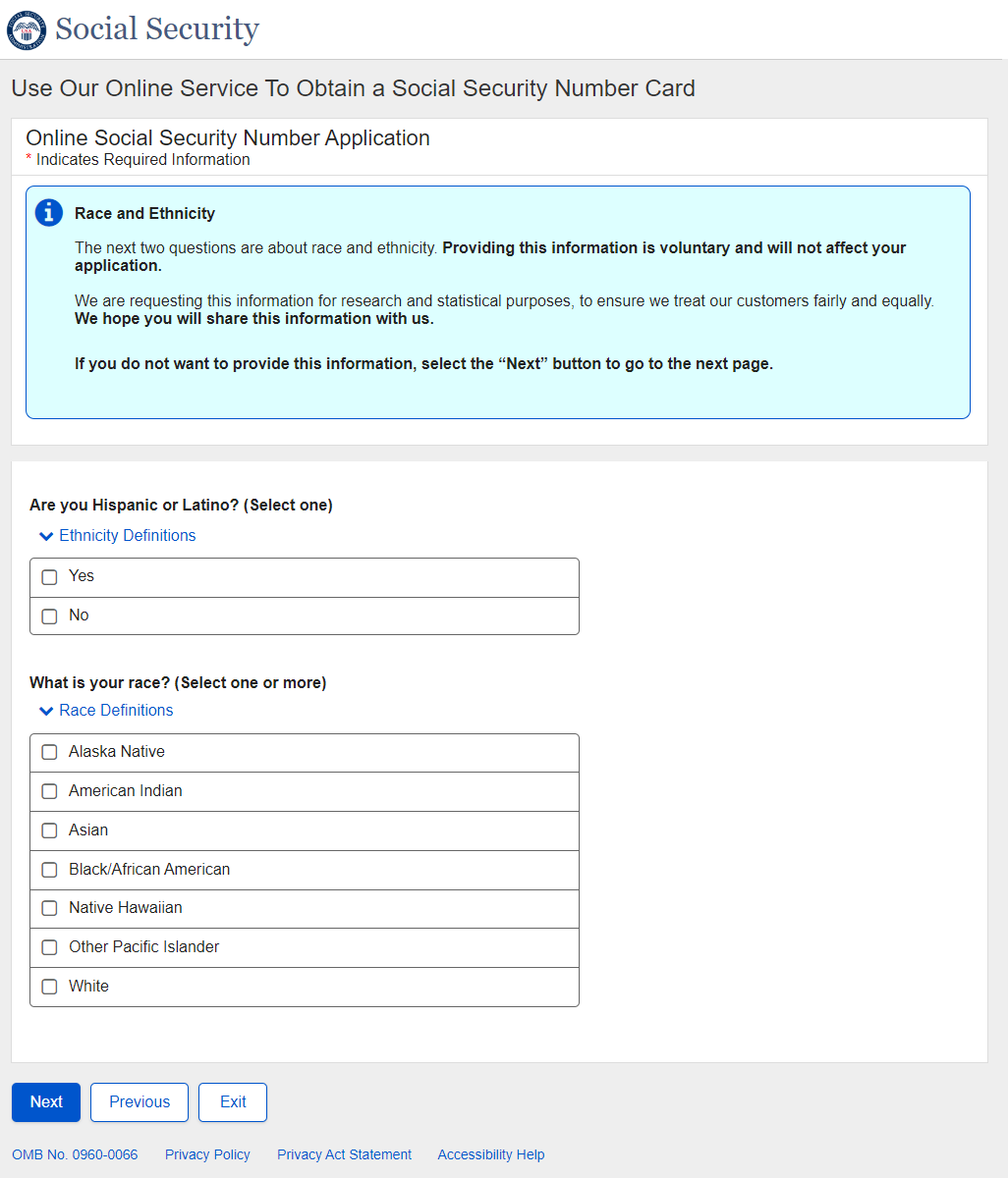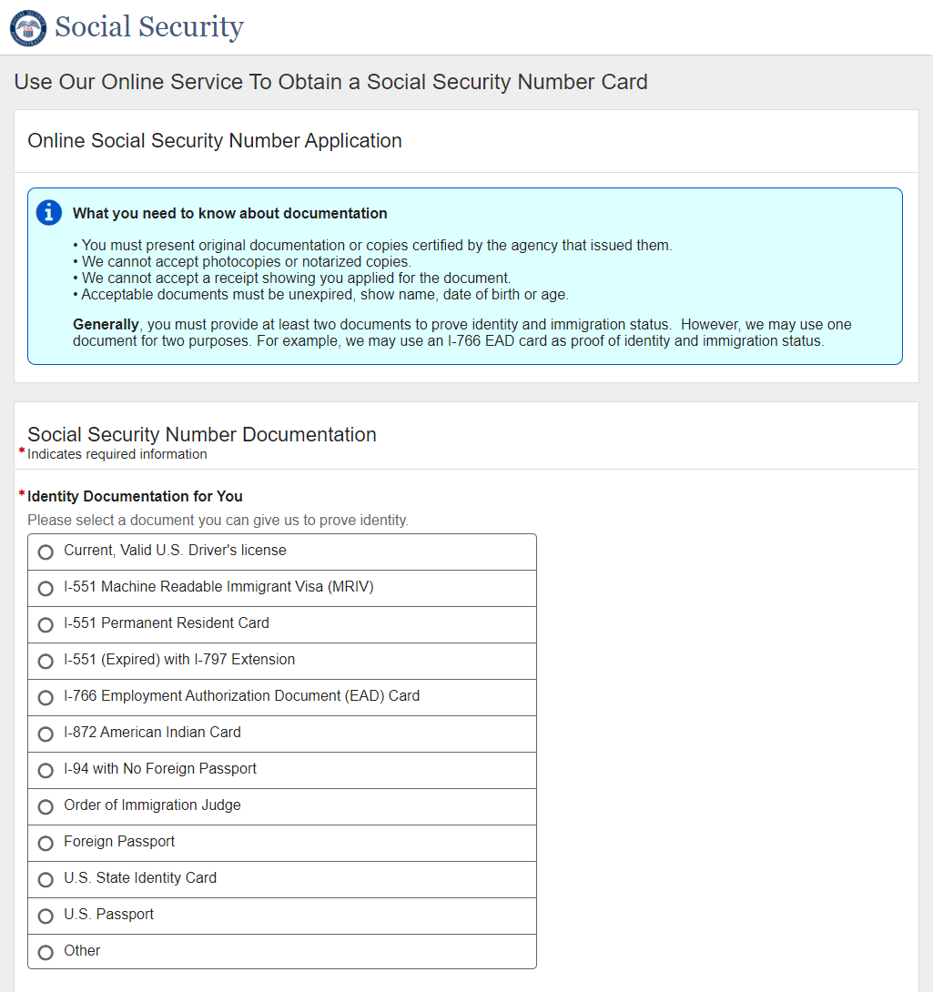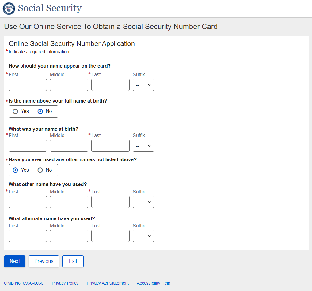 Application for a Social Security Card