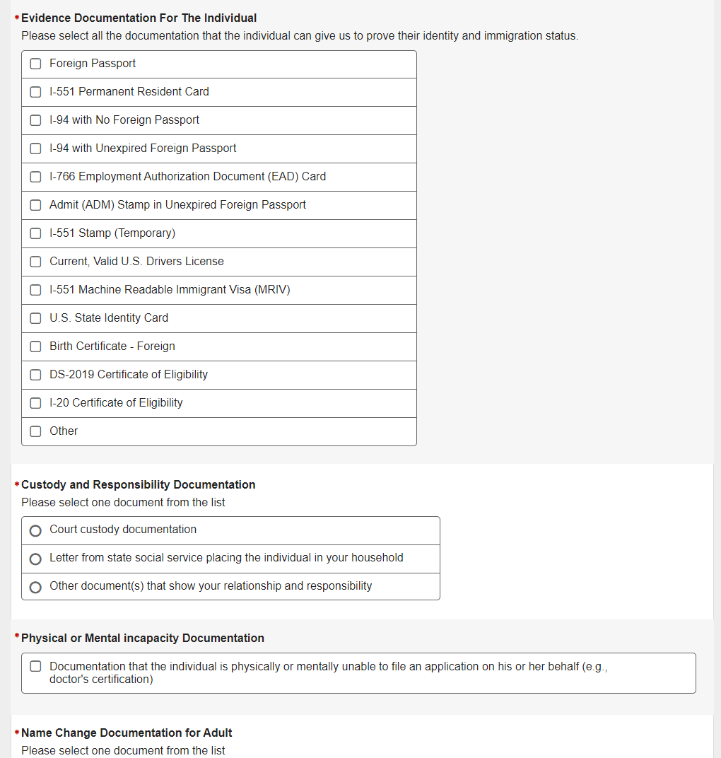 1. Non-U.S. Original Someone Else Adult - Individual's Documentation