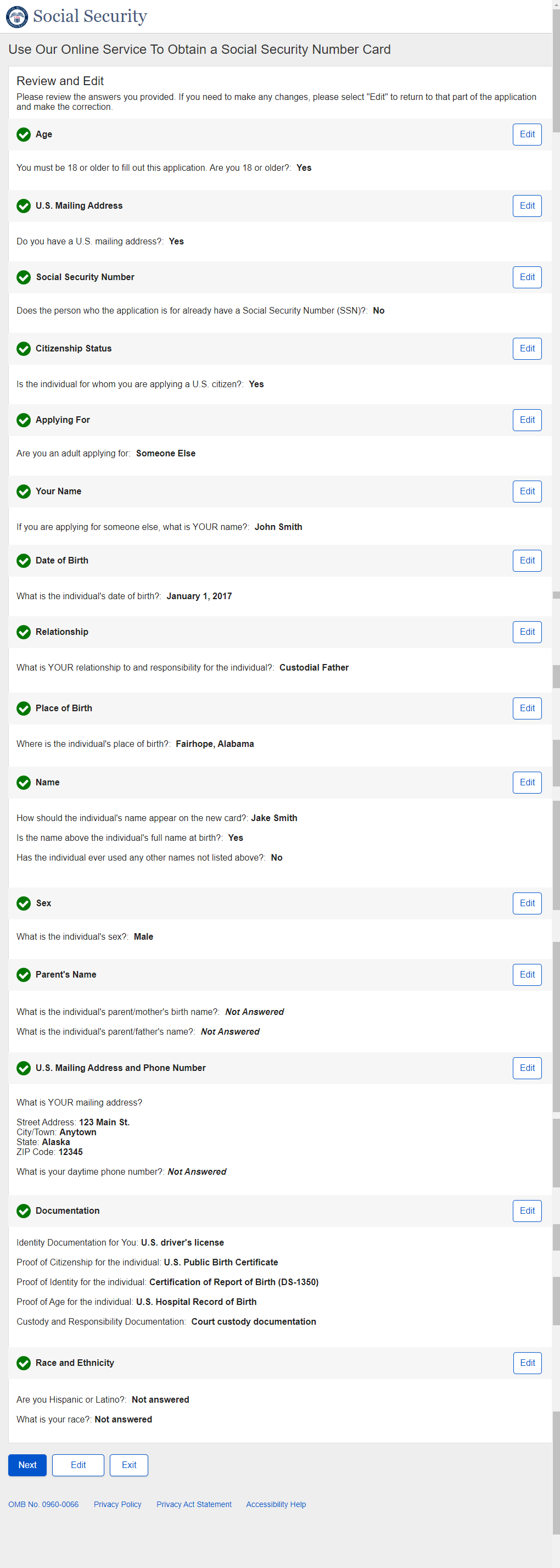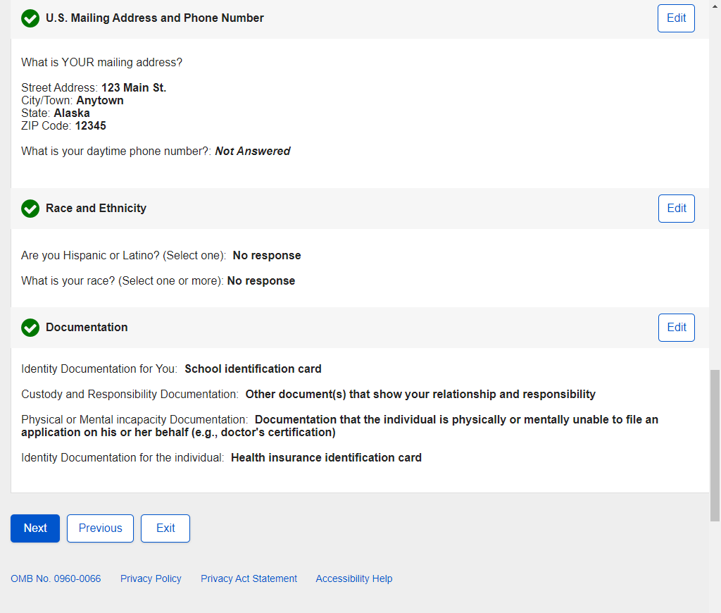 1. Non-U.S. Replacement Someone Else Adult - Individual's SSN