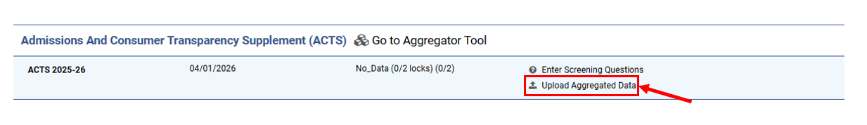 Reporting of ACTS will occur sequentially in two different systems: 1) the ACTS Aggregator Tool, and 2) the IPEDS Data Collection System (DCS). The process for each of these includes the following: