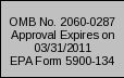The public reporting and recordkeeping burden for this collection of information is estimated to average 43 hours per response. Send comments on the Agency's need for this information, the accuracy of the provided burden estimates, and any suggested methods for minimizing respondent burden, including through the use of automated collection techniques to the Director, Collection Strategies Division, U.S. Environmental Protection Agency (2822T), 1200 Pennsylvania Ave., NW, Washington, D.C. 20460. Include the OMB control number (2060-0287) in any correspondence. Do not send the completed form to this address. |