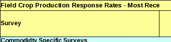 The specialty surveys, listed in the first part of the table above, target commodities that cannot be covered adequately in general purpose surveys. Most are grower surveys using a mail phase with telephone nonresponse follow-up until a prescribed cutoff date. The sample sizes cited often represent over 50 percent of the sampling population and contain a large number of matched reports from survey to survey. These surveys are coordinated with other collections to avoid duplicate contacts. The Sunflower, Non-Oil Survey, the Sugarbeet Survey, and the Sugarcane Survey are censuses of all known processors using a mail phase with phone follow-up.