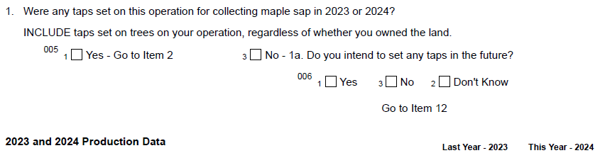 The additional question is meant to keep NASS’ list frame as accurate as possible for current and possible maple producers for this end of year survey.