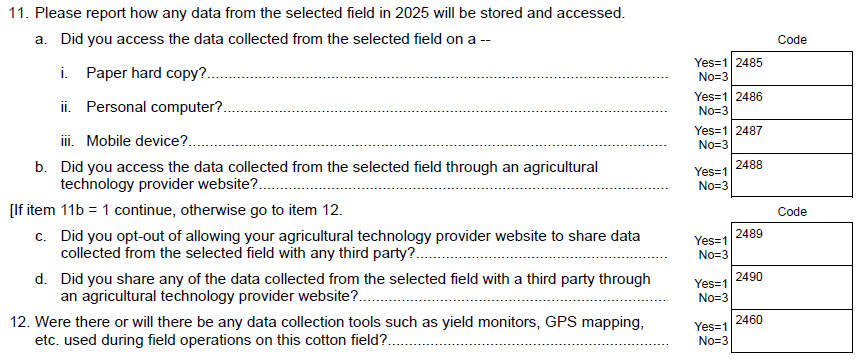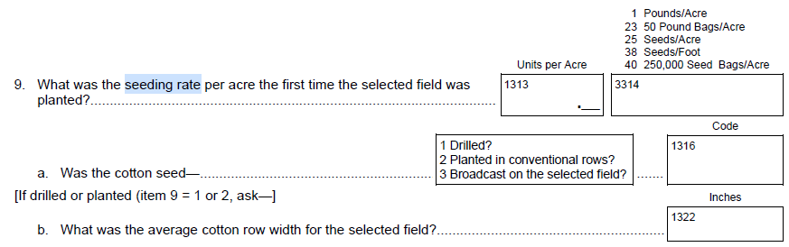 NEW Question 9: “Was the cotton harvested and hauled from the selected field dried (or will be dried) before it was sold or stored?” {y/n}
