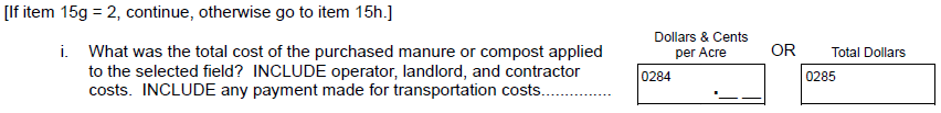 Question 15a - From: “To how many acres in the selected field was manure or compost applied?”