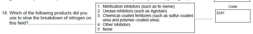 To: “Were the manure or compost (including composted manure) application rates to the selected field influenced by Federal, State, or local restrictions?”