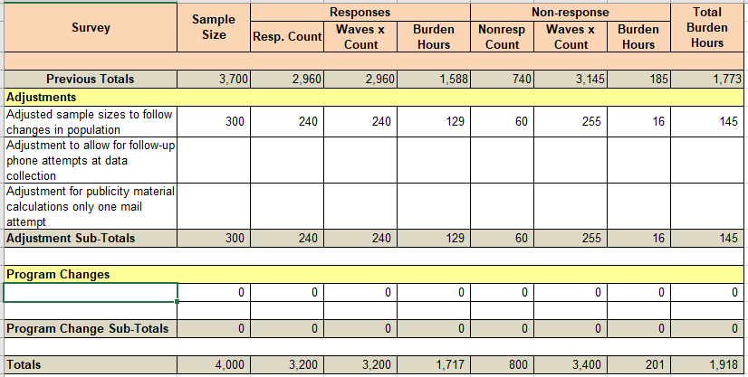 There is an increase in the burden hours from the previous submission. The increase resulted from changes to the target population. The previous submission was 1,773 hours annually and this submission is 1,918 hours.