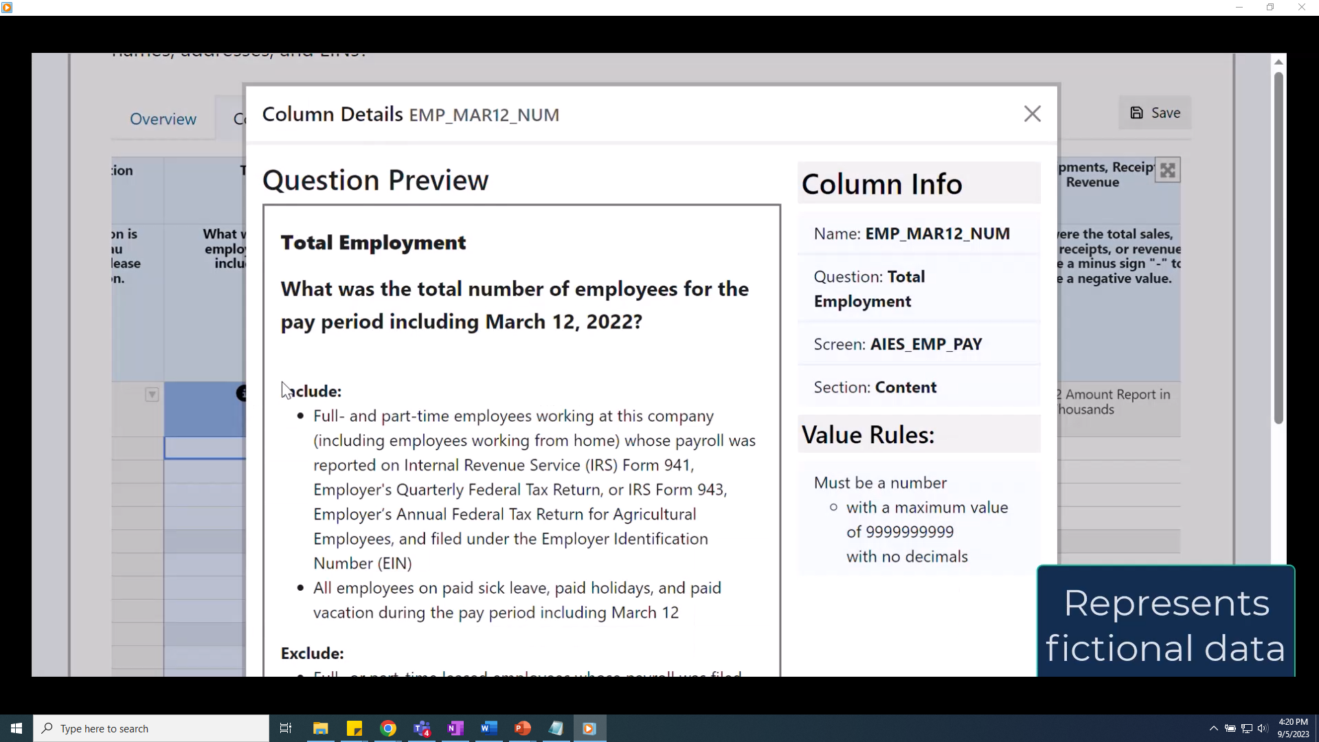 I am going to give you a little background about what we will be working on today. Today you will be helping us to evaluate the design of the interactive question preview tool for the Annual Integrated Economic Survey (or AIES). The interactive question preview tool is in the early stages of development, so this is an opportunity to make sure it works as smoothly as possible. You are being asked to be a part of this evaluation because your company recently responded to the 2022 AIES – and I just want to take a moment and thank you so much for your response!