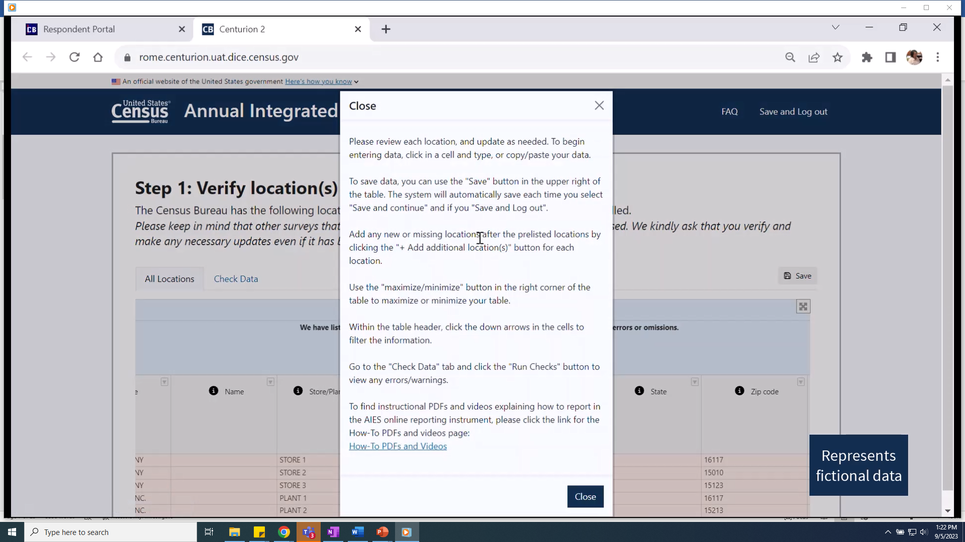 Video 2: Step 1 – introduced the first step of the survey, updating lists of locations, including how to add missing locations, indicating operating status, and answering follow-up questions as driven by the instrument.