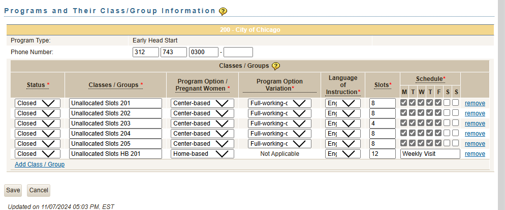 Edit Programs and Their Class/Group Information: