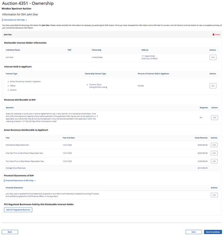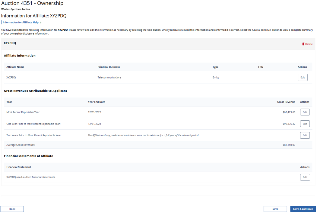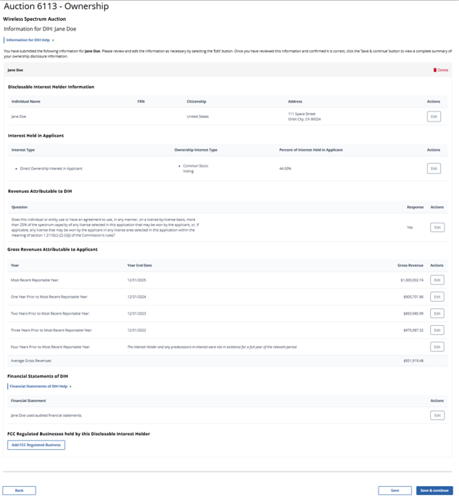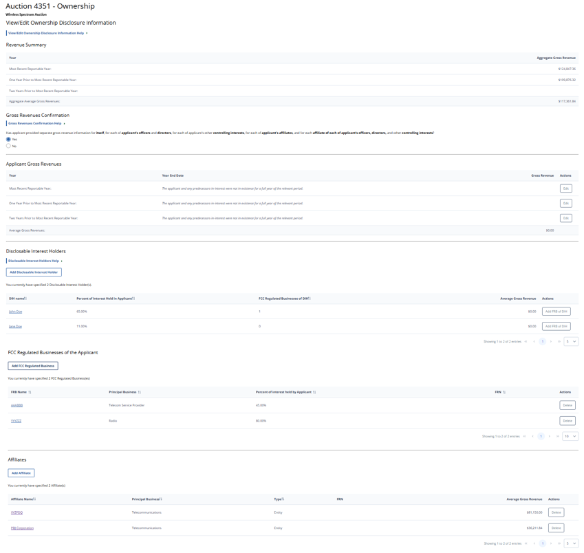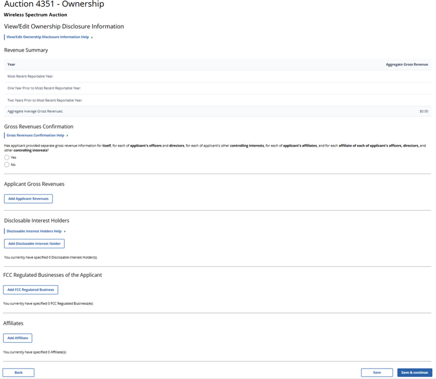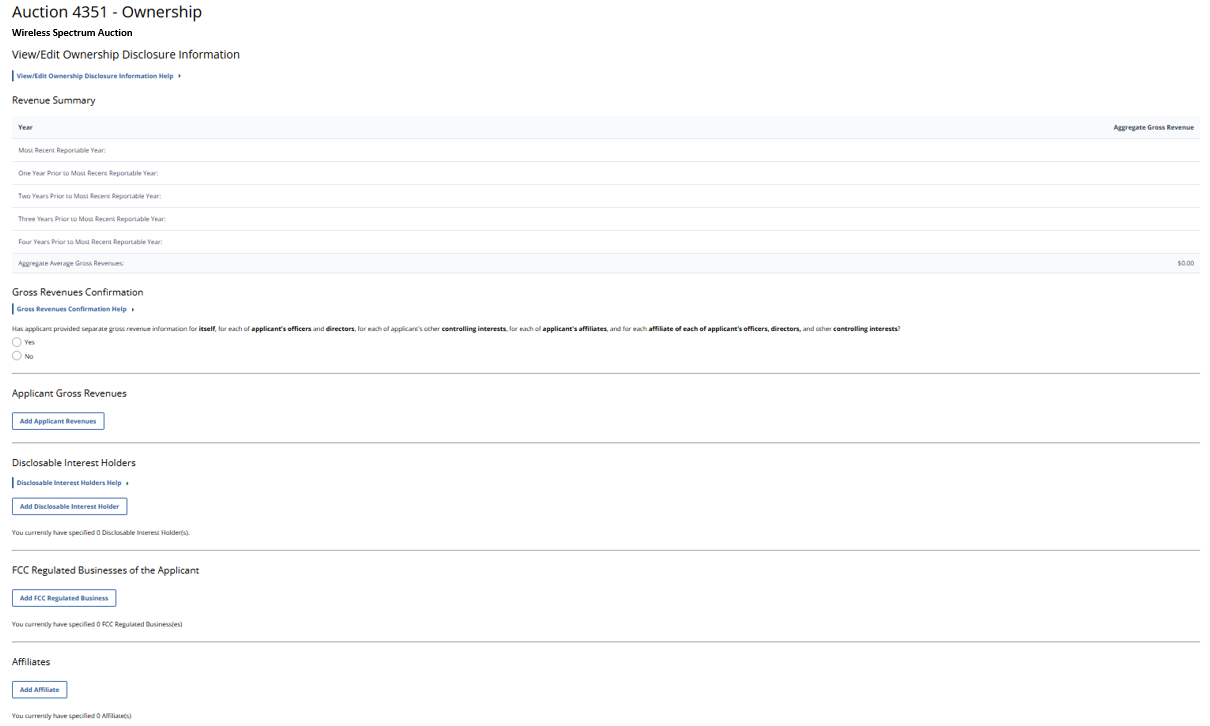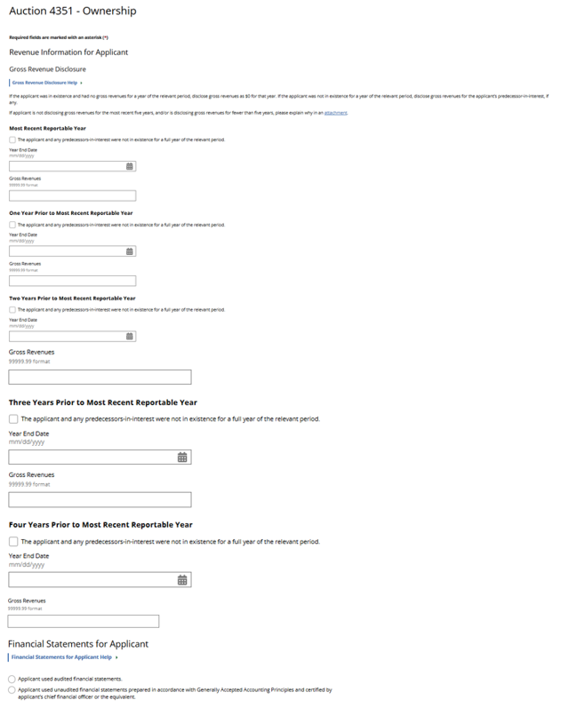 (Displayed Only to Wireless Auction Applicants Seeking a Small Business Bidding Credit Where Preceding 5 Years of Gross Revenues Must Be Disclosed)