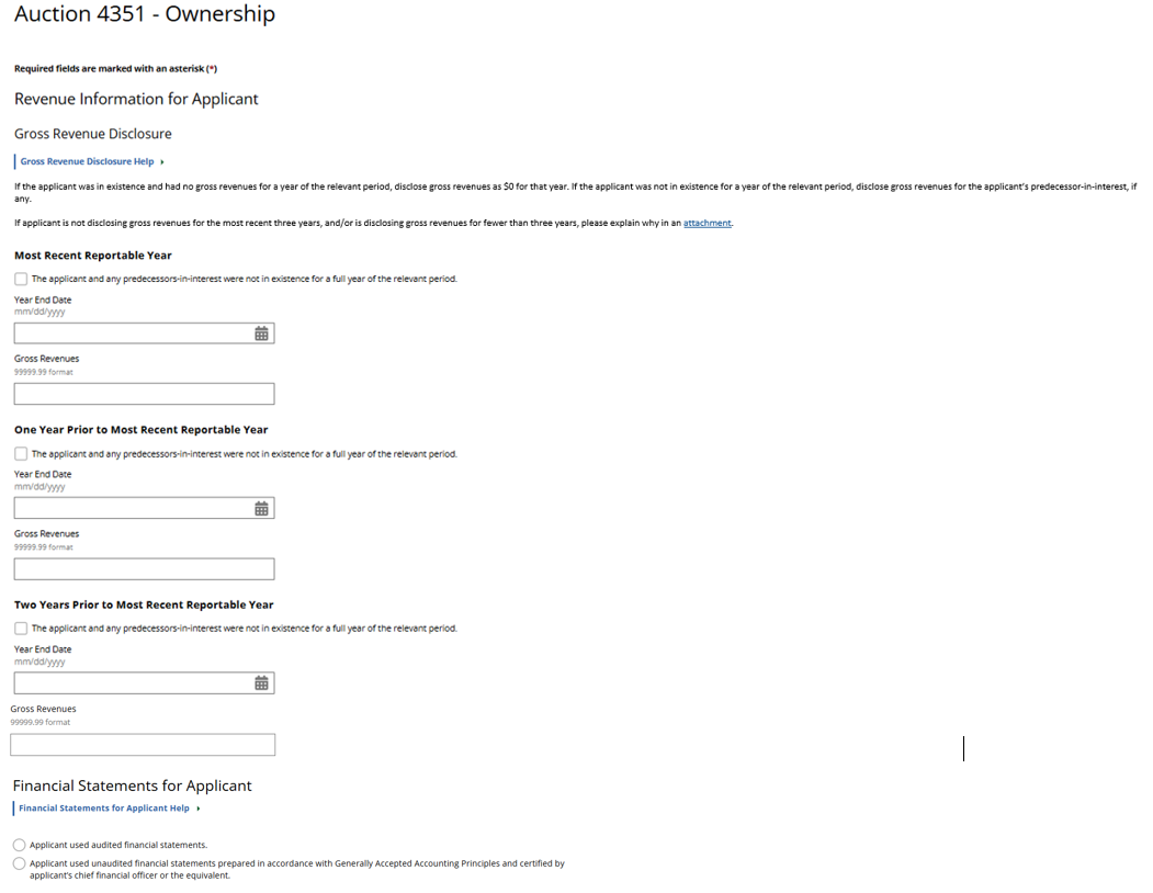 (Displayed Only to Wireless Auction Applicants Seeking a Small Business Bidding Credit Where Preceding 3 Years of Gross Revenues Must Be Disclosed)