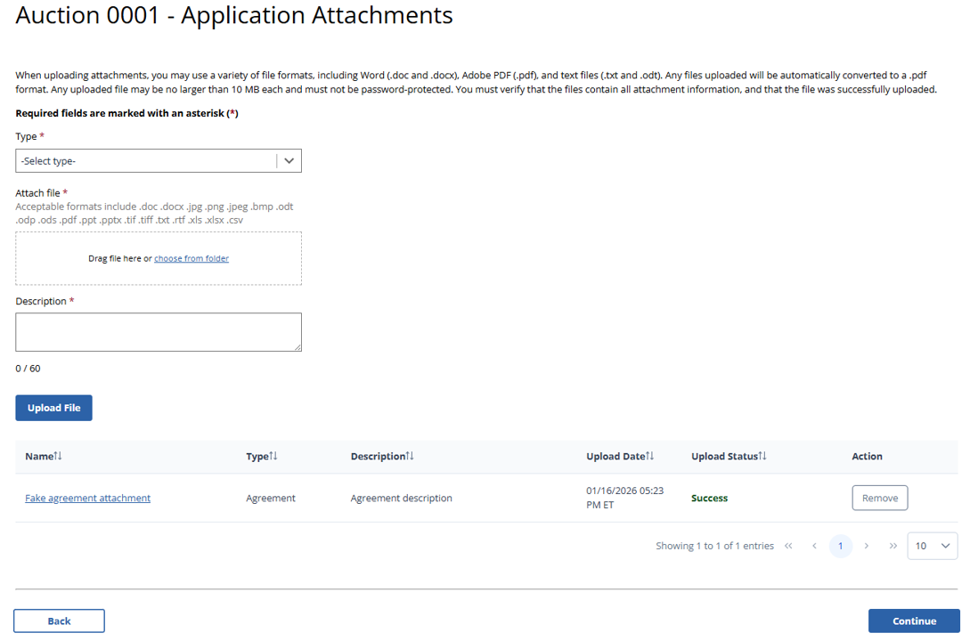 (Error Summary With No Errors Detected as Displayed to Broadcast Table Service Auction Applicants)