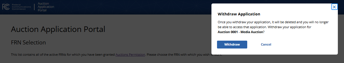 (Withdraw Auction Application – Displayed to Wireless and Broadcast Auction Applicants)