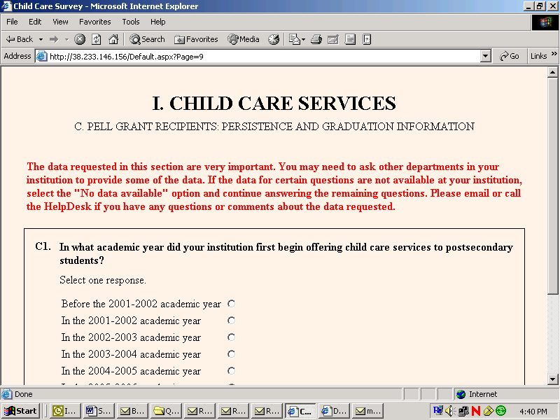 CONTINUING FROM THIS POINT IS A RELISTING OF ALL SURVEY QUESTIONS ON A SINGLE SURVEY PAGE. THE END OF THE REVIEW ALL PAGE CAN BE SEEN BELOW.