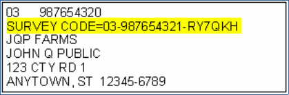 2. Enter your SURVEY CODE from the mailing label on the questionnaire that was sent to you. This code appears above your name and address.