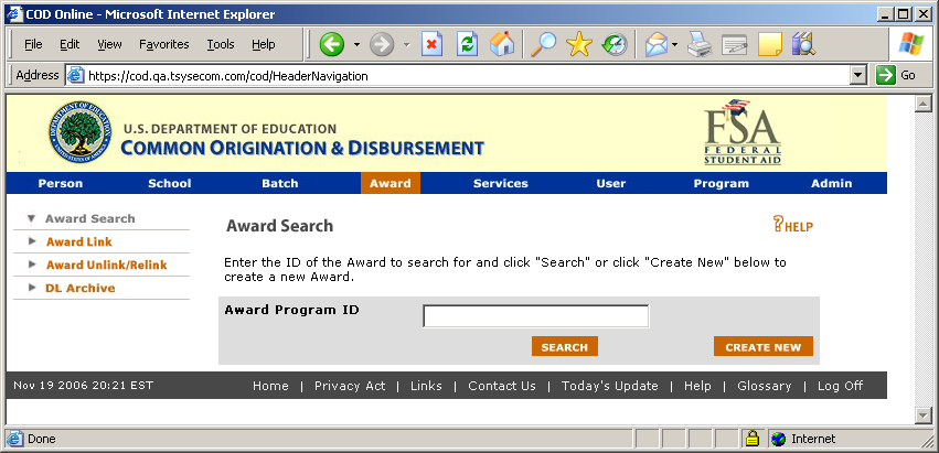 The Award Search page will allow authorized users to search for ACG grants by the Award ID.