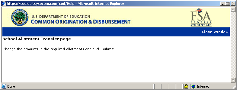The School Allotment Transfer page will allow authorized users to transfer ACG funds within school allotments.