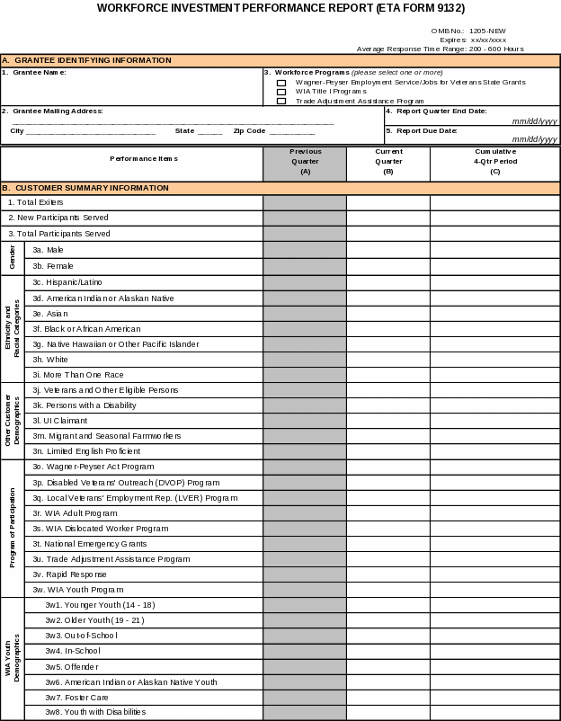 The reporting and record keeping requirements contained in this Handbook are designed to strengthen the Department’s various program performance reporting systems into a single streamlined reporting structure. This comprehensive reporting structure features a set of uniform quarterly report formats for capturing services to employer and job seeker customers across programs, including a special report on services to the nation’s veterans, other eligible persons, and transitioning service members. A standardized set of data elements that includes information on participant demographics, types of services received, and performance outcomes based on a set of common measures defined consistently across programs are key components of this reporting structure. This WISPR System will be used to respond more quickly and effectively to the management information needs of Congress, the Administration and the general public.