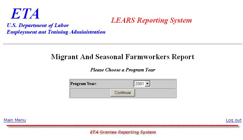 Access the LEARS Reporting System Main Menu (Figure 3).